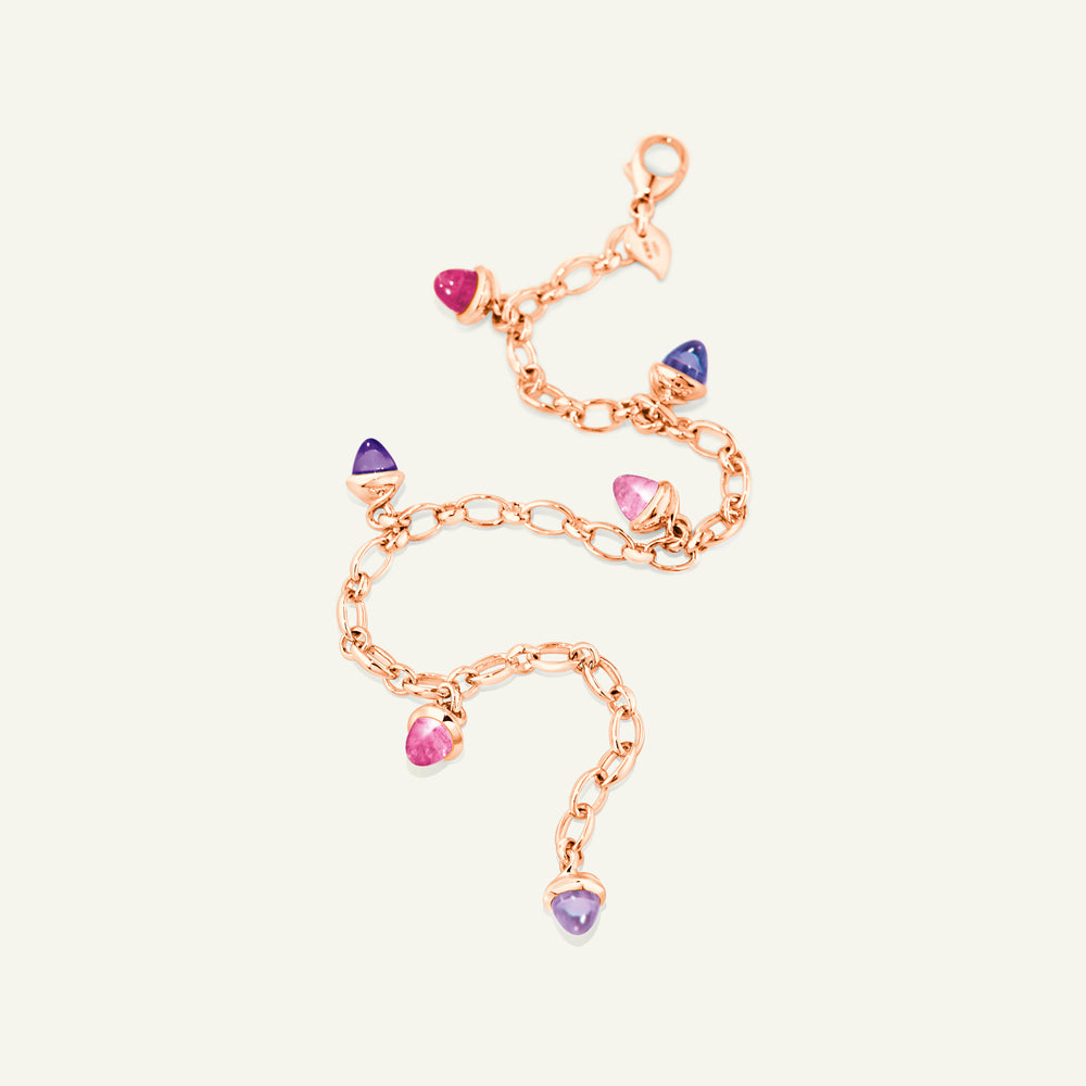 A joyful mix of gemstones, the MIKADO Charm Bracelet in ‘Wildberry’ features six mini acorn-shaped gems in luscious shades of blackberry, raspberry, and blueberry, strung along a handcrafted 18K gold chain. Bold yet endlessly elegant, it’s designed to move effortlessly from day to night.