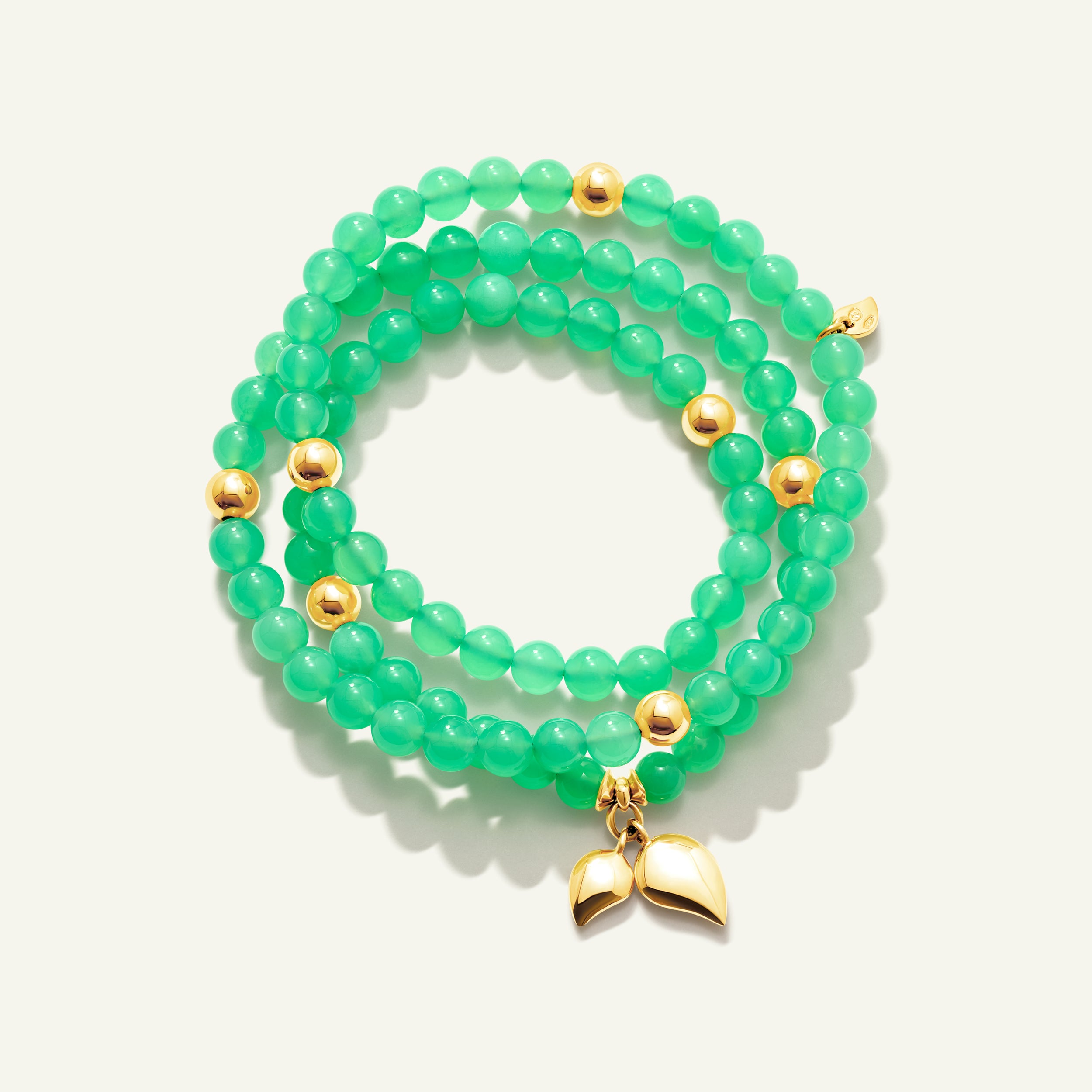 B-IND-Chry-3-l-rg | INDIA Bracelet with 18K Gold Beads and Chrysoprase, Three Rows