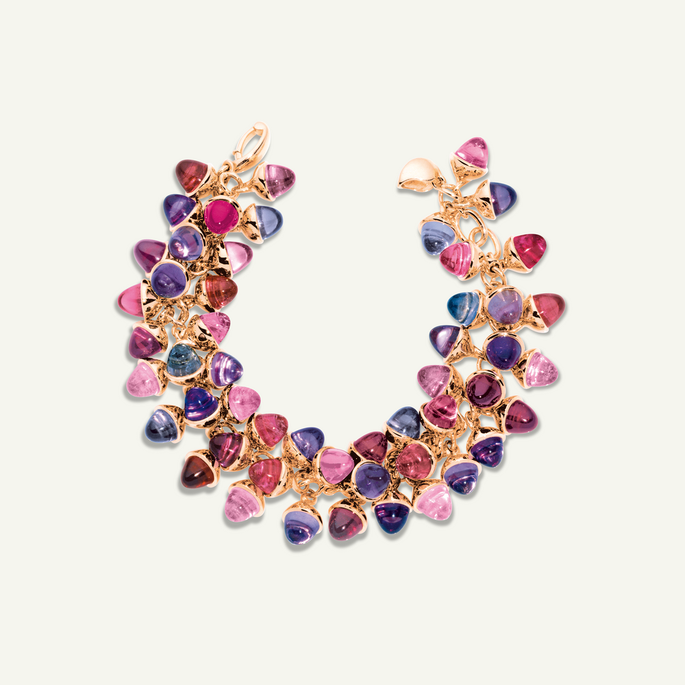 Step into a world of refreshing beauty with the iconic MIKADO Flamenco Bracelet, featuring 51 acorn-shaped gemstones that capture the passion and energy of Flamenco dance. Handcrafted in 18K gold, the ‘Turquoise’ Color Story shimmers with vibrant blue-green gemstones that recall the clarity of tropical waters. A striking design, it brings fluid movement and timeless elegance to your style.