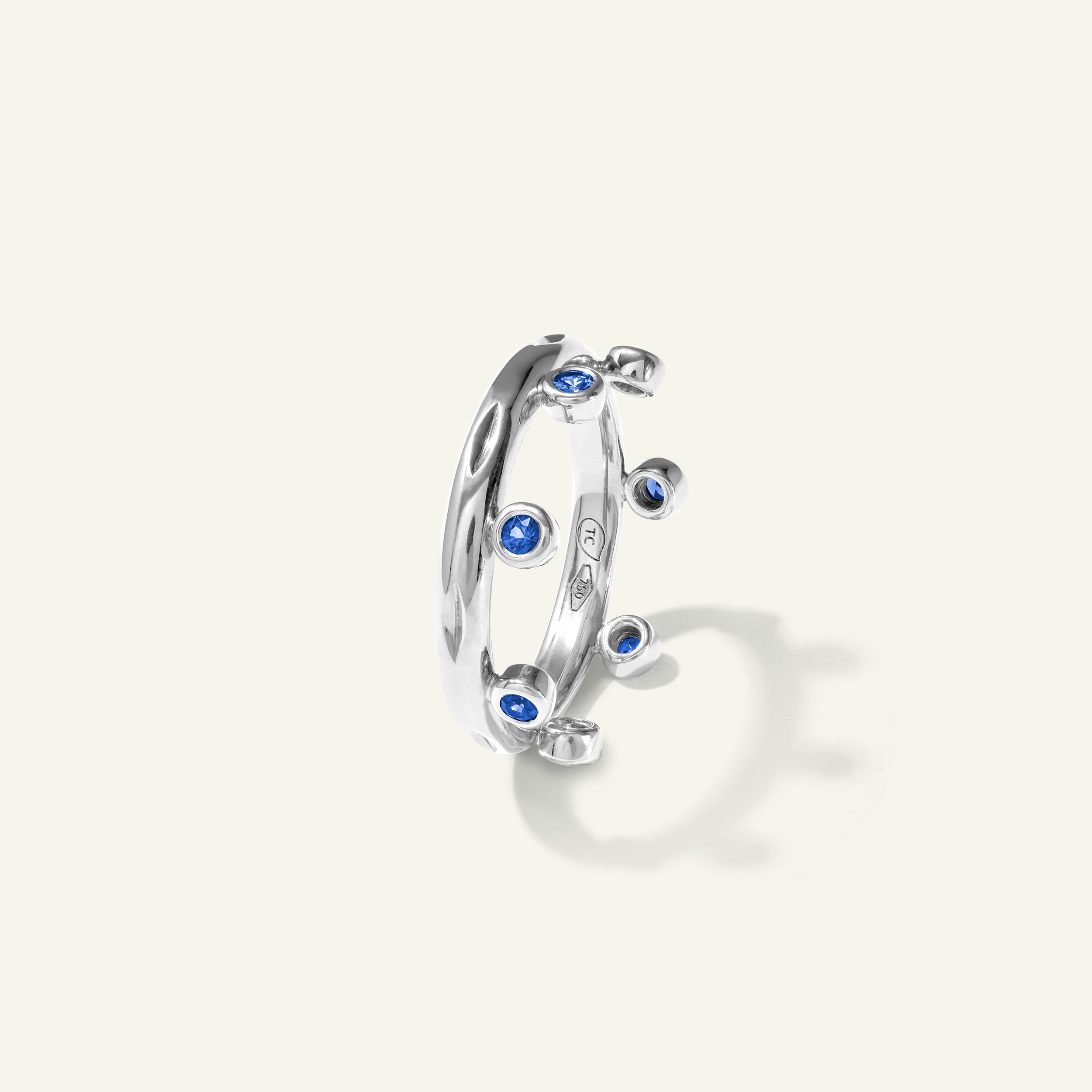 The GYPSY Crown Ring in the Color Story ‘Ocean’ captures the refreshing spirit of the sea. Crafted in 18K gold, it shines with brilliant-cut blue sapphires set along the crown-shaped band. With gemstones positioned on the sides, this design offers a striking silhouette and endless styling possibilities. As versatile and unique as the person who wears it, this ring is made to be collected, stacked, and cherished.