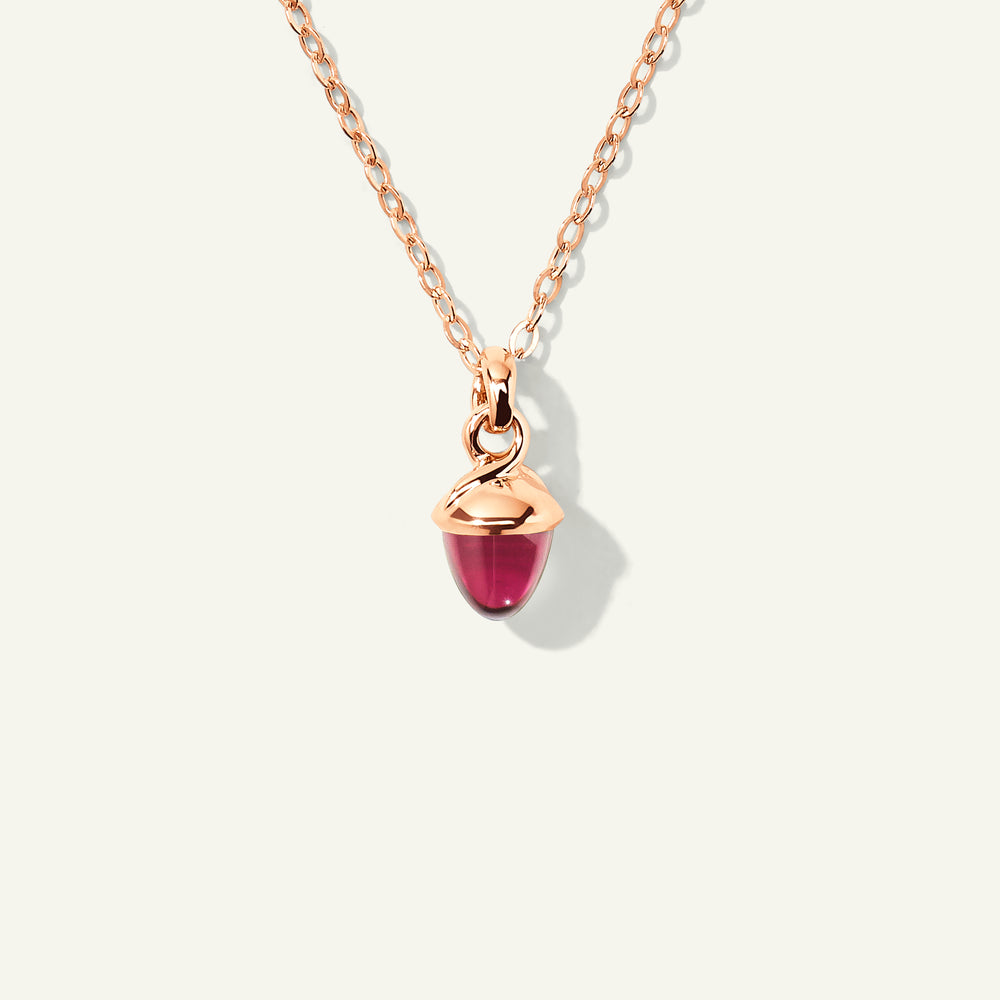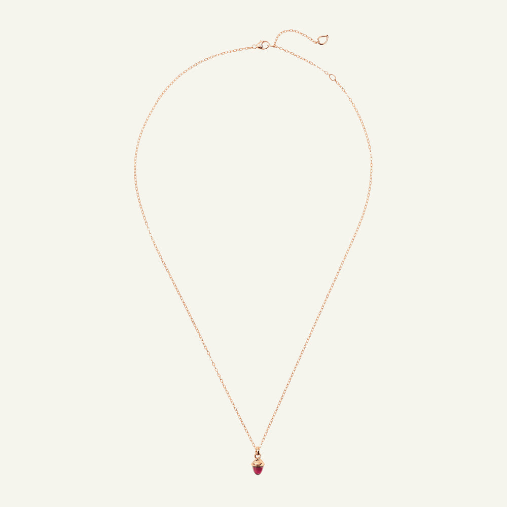 The myMIKADO Necklace with Rose Tourmaline features a petite, vibrant pink acorn-shaped gemstone on an adjustable 18K gold chain. The timeless necklace is inspired by birthstones and makes for a delicate statement on its own. It’s a charming piece to start your collection or layer to create your own signature style.