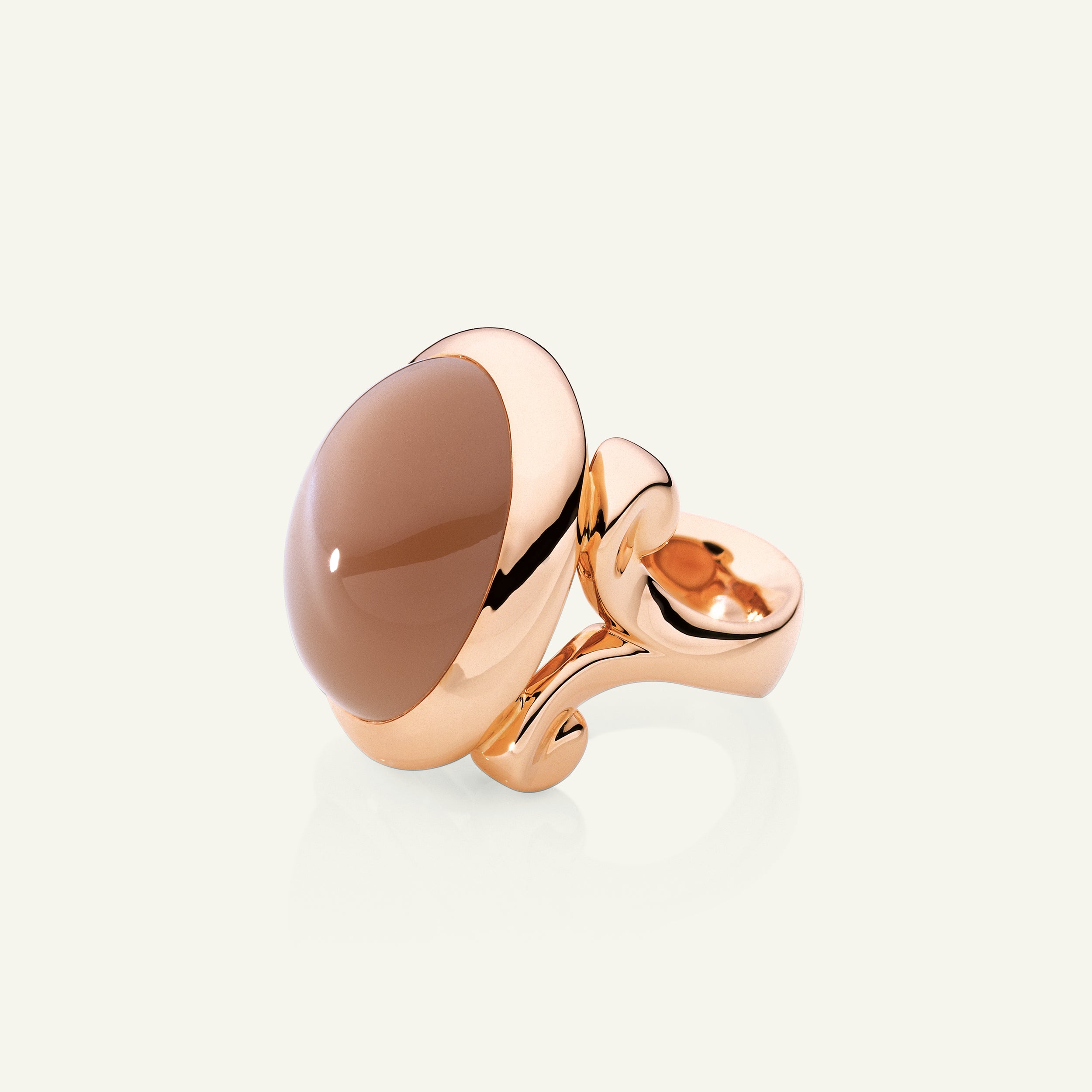The HIPPIE GLAM Small Ring features a smooth cabochon brown Moonstone set in 18K gold. Its organic shape brings laid-back elegance to everyday wear. This versatile ring layers beautifully or makes a modern statement on its own.