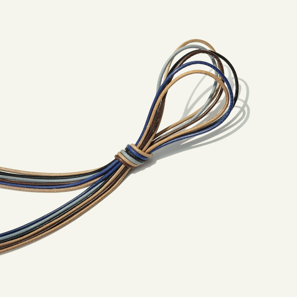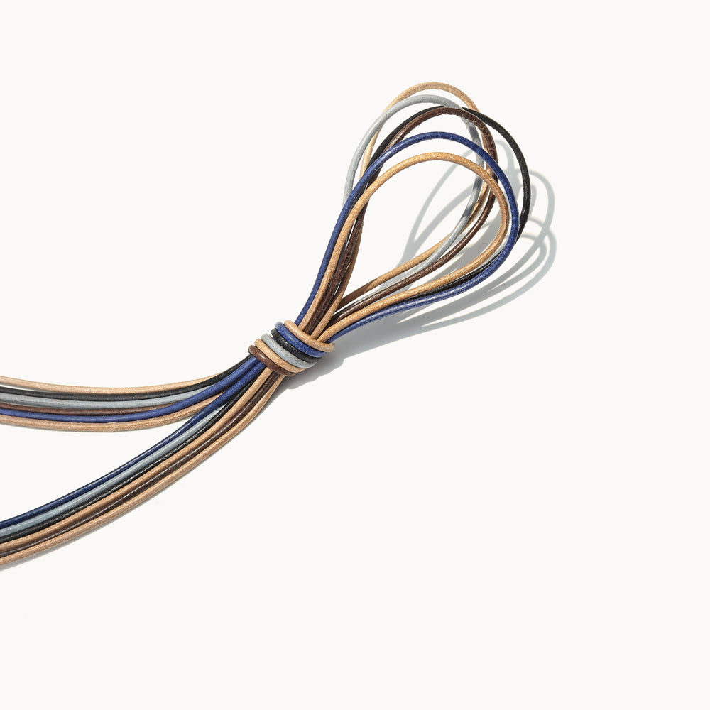Our Leather Mix features six thin, handmade leather cords. Wrap around your wrist with a DROP clasp for a stylish, effortless look or create your own necklace with our range of pendants.