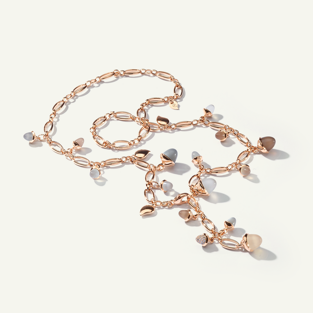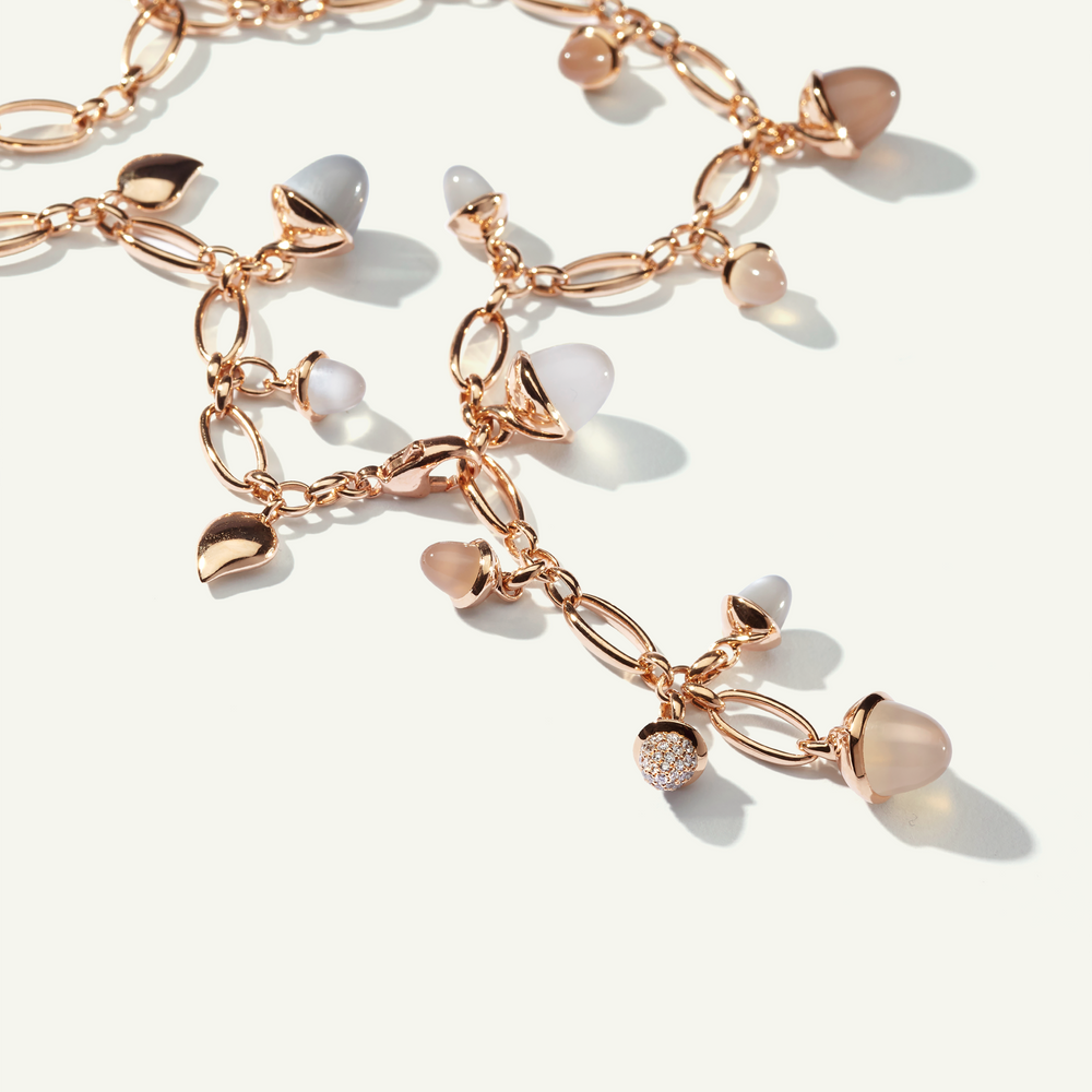 Make a statement with the MIKADO Necklace in ‘Cashmere,’ offering versatile styling options to suit any occasion. A cascade of luminous moonstones in soft neutral tones shimmers on a handcrafted 18K gold chain. Accented with Diamond Pavé and water drop details for a touch of brilliance. Elegant enough for evening, effortless enough for every day.