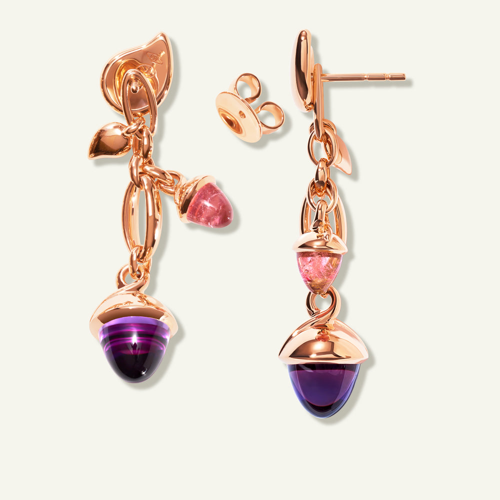 Celebrate individuality with the MIKADO Dangling 2 Acorn Earrings, designed to be worn as elegant drops, refined studs, or as pendants on a chain. Handcrafted in 18K gold, the design’s water drop accents add a signature touch. The vibrant ‘Wildberry’ Color Story pairs luscious shades of blackberry, raspberry, and blueberry for a look that feels playful, colorful, and effortlessly chic.