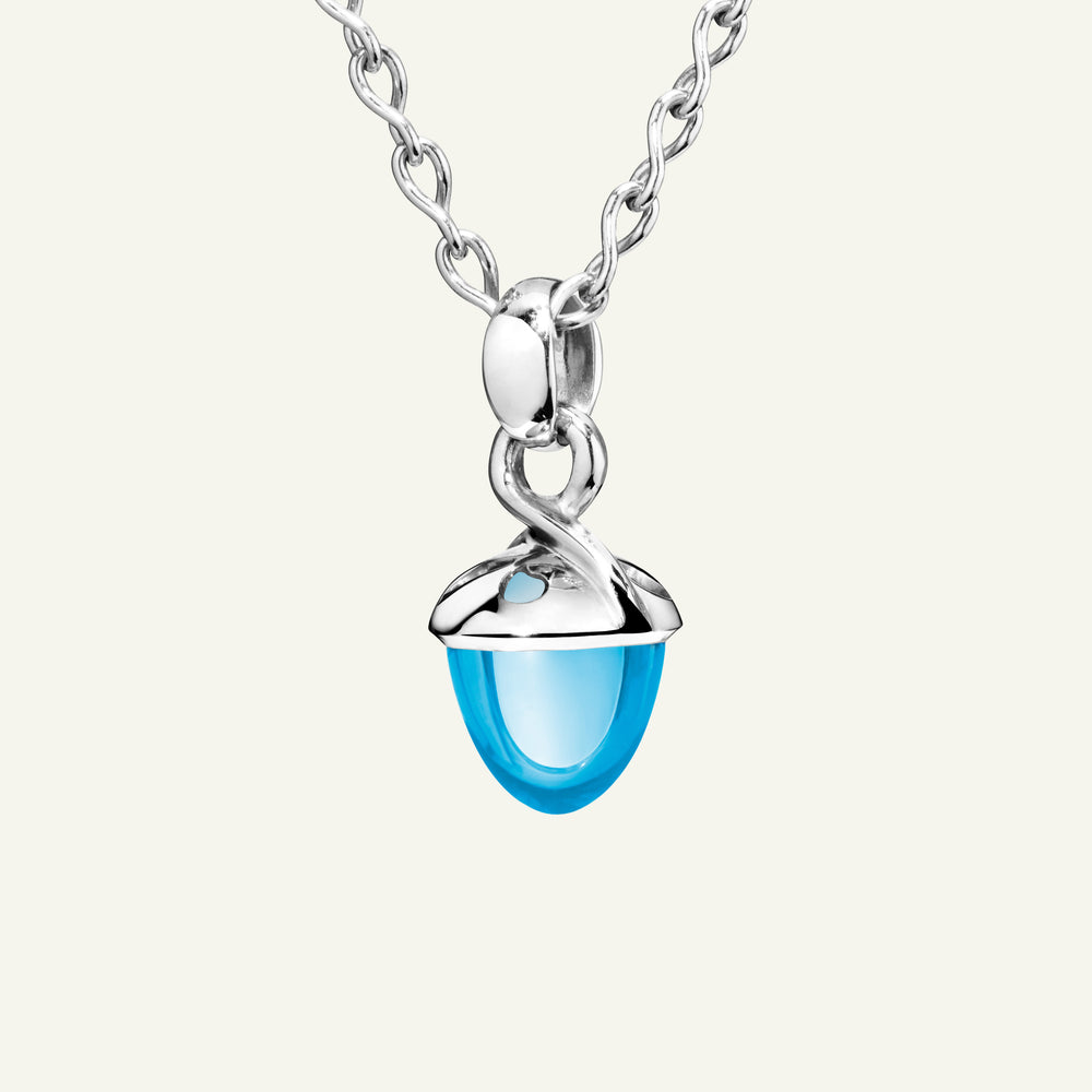 The iconic MIKADO Bouquet Fairy Pendant with Swiss Topaz features a bright, vibrant blue gemstone in the signature acorn shape, set in 18K gold. The openwork cap design lets light flow through, enhancing the gemstone’s brilliance and revealing even more of its beauty. A graceful detail within the world of MIKADO collectibles, it’s ideal for mix & match styling, collecting, and gifting.