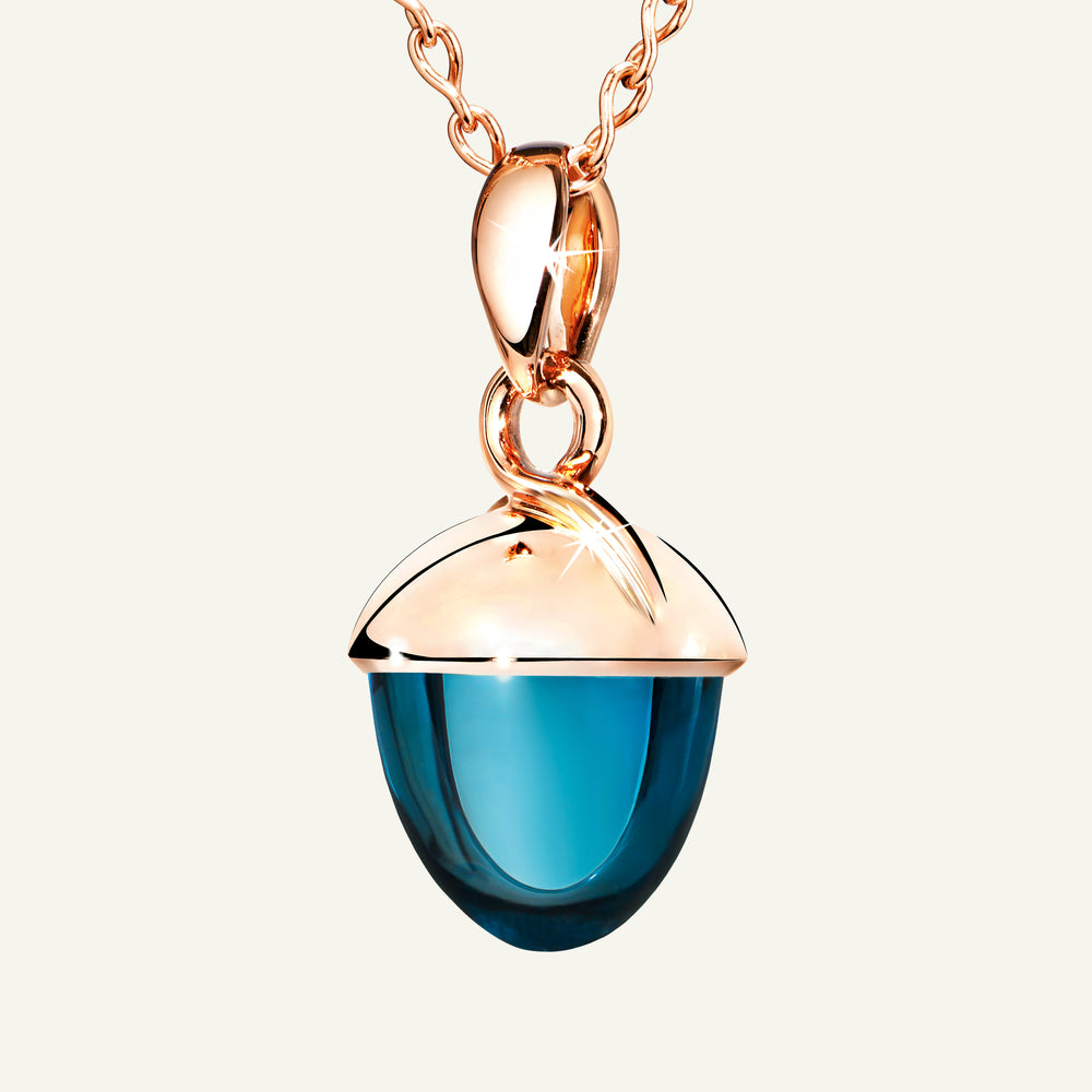 The iconic MIKADO Bouquet XL Pendant with London Topaz features a rich, deep blue gemstone in a large acorn shape, set in 18K gold. Designed to be worn your way, MIKADO Bouquet Pendants can be threaded onto a delicate choker-style chain, knotted onto a leather cord with other MIKADO pendants, and effortlessly integrated across the entire TAMARA COMOLLI collection. Ideal for mix & match styling, collecting, and gifting.