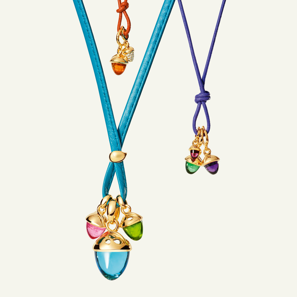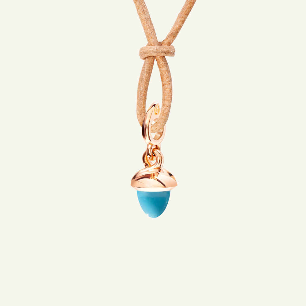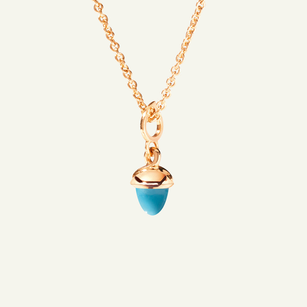 The miniMIKADO Pendant with Turquoise features a petite, brilliant blue-green gemstone in the signature acorn shape, set in 18K gold. Designed for effortless styling, miniMIKADO pendants can be worn on a delicate chain or paired with other MIKADO pendants for a personalized look. Ideal for mix & match styling, collecting, and gifting.