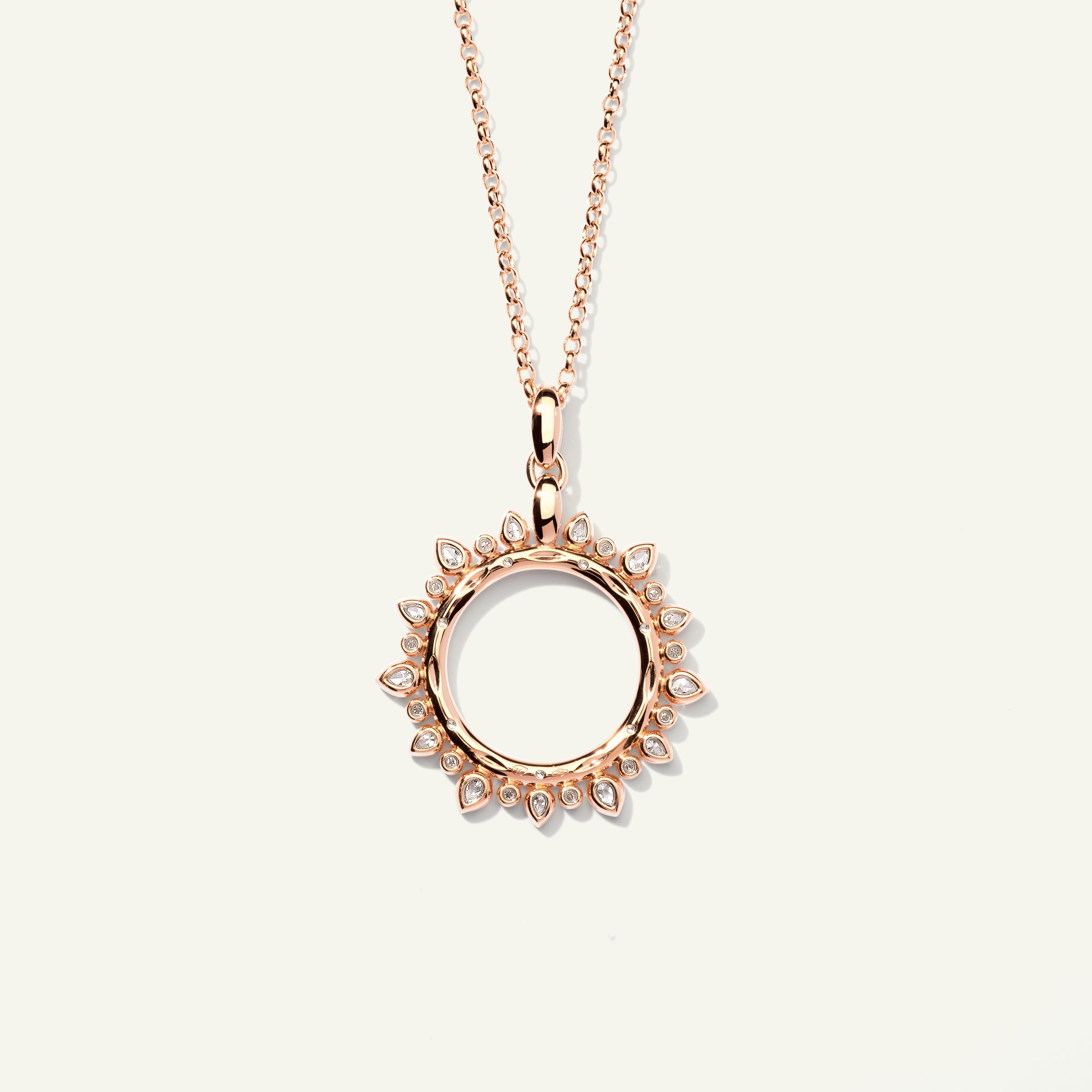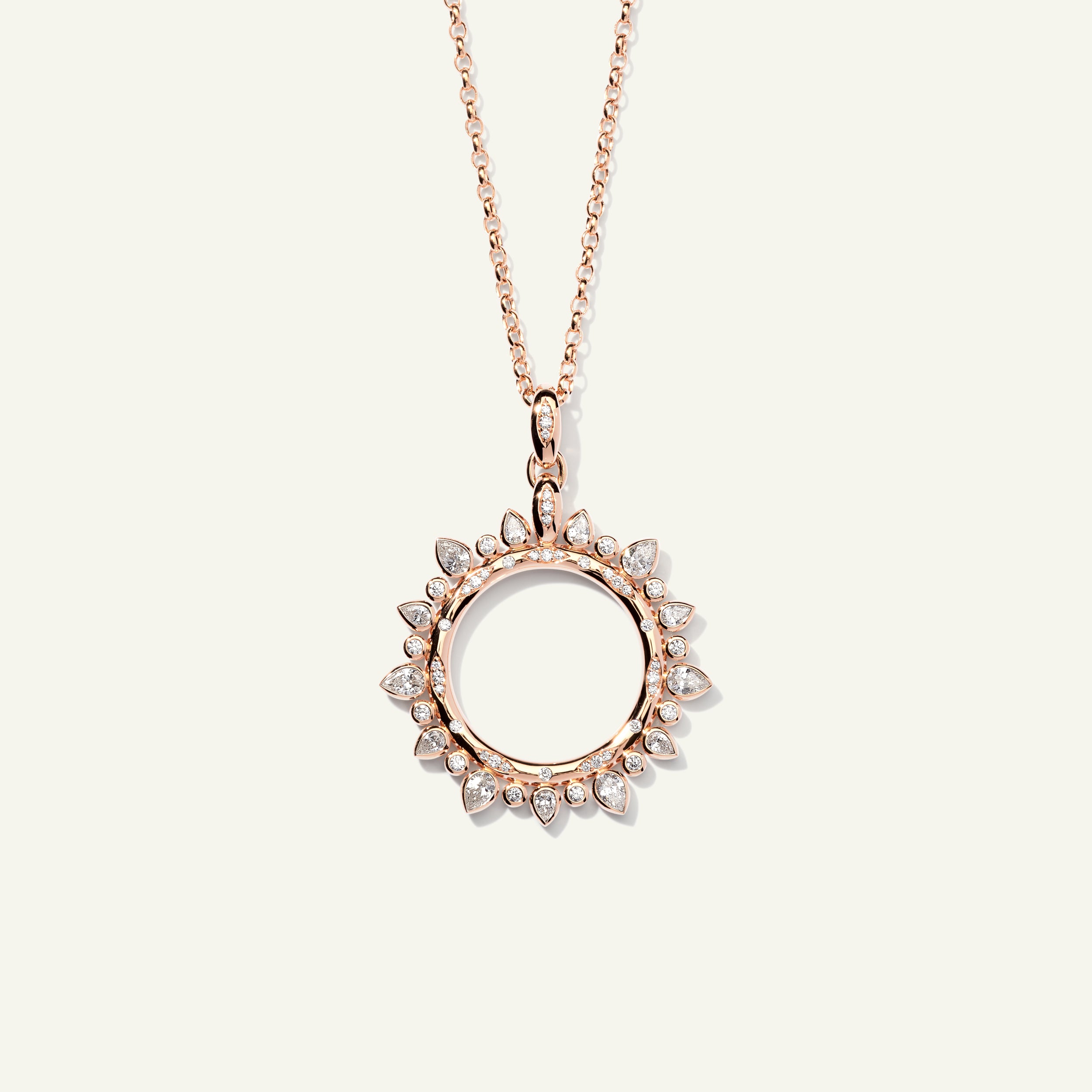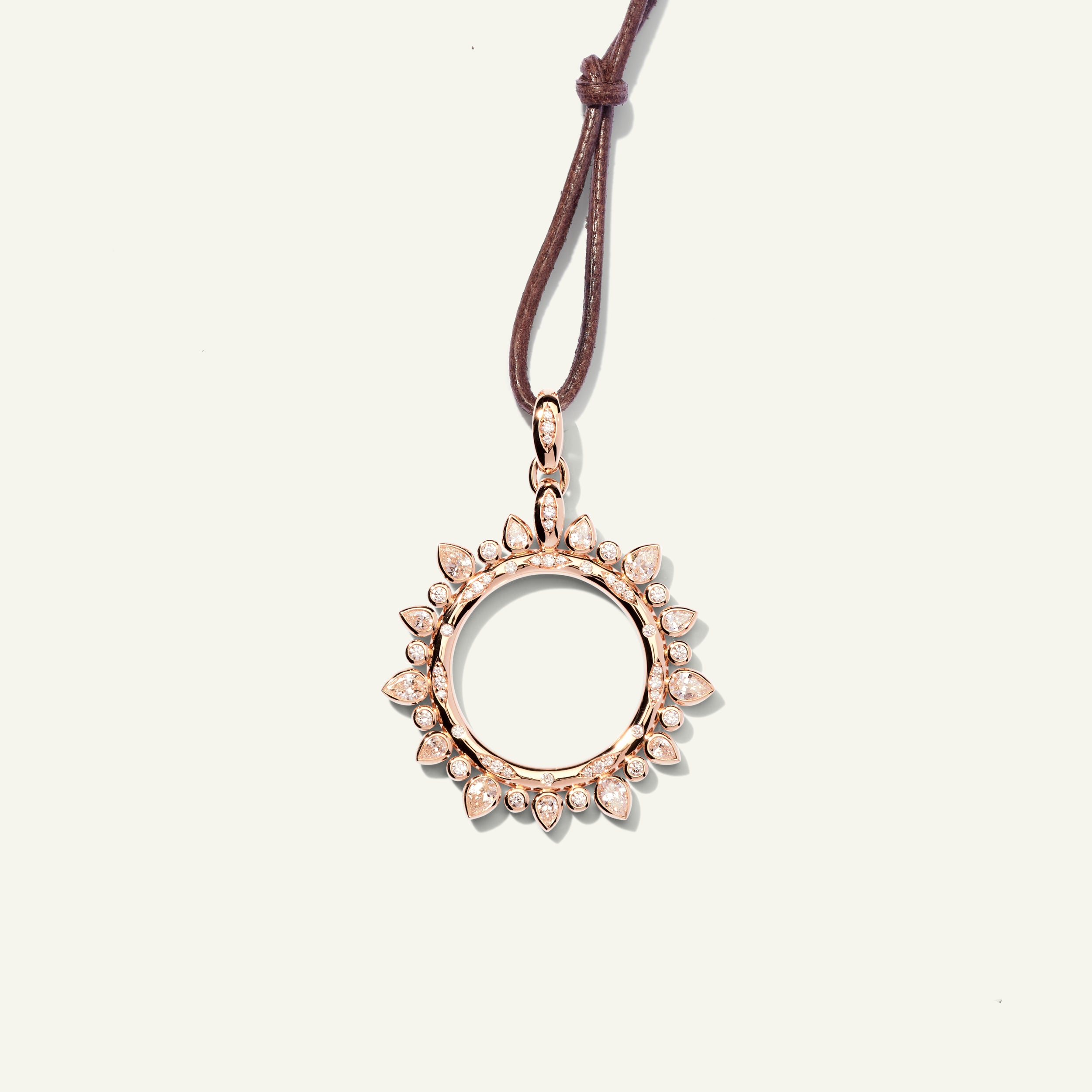 Radiant and timeless, the SIGNATURE Large Sun Pendant in ‘Classic’ shimmers with pure elegance. Brilliant diamonds are artfully arranged in a luminous sun pendant in 18K gold, symbolizing warmth, happiness, and positivity. Lightweight and full of life, it shines effortlessly on a casual leather cord or a delicate gold chain.