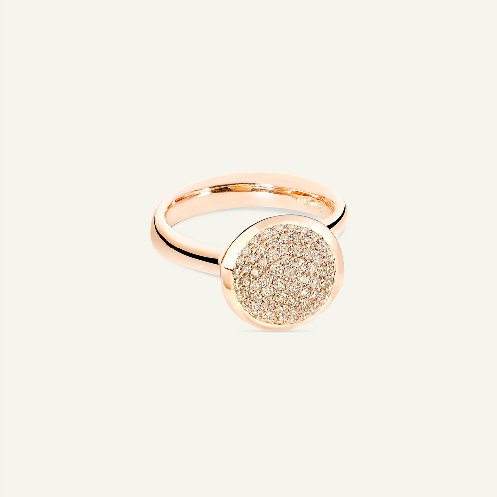 The BOUTON Large Ring in 18K gold features sparkling champagne Diamond Pavé, admired for its warm glow and refined elegance. Designed with exceptional craftsmanship, it can be worn on its own as a striking statement or stacked with other BOUTON rings in various sizes for a one-of-a-kind look.
