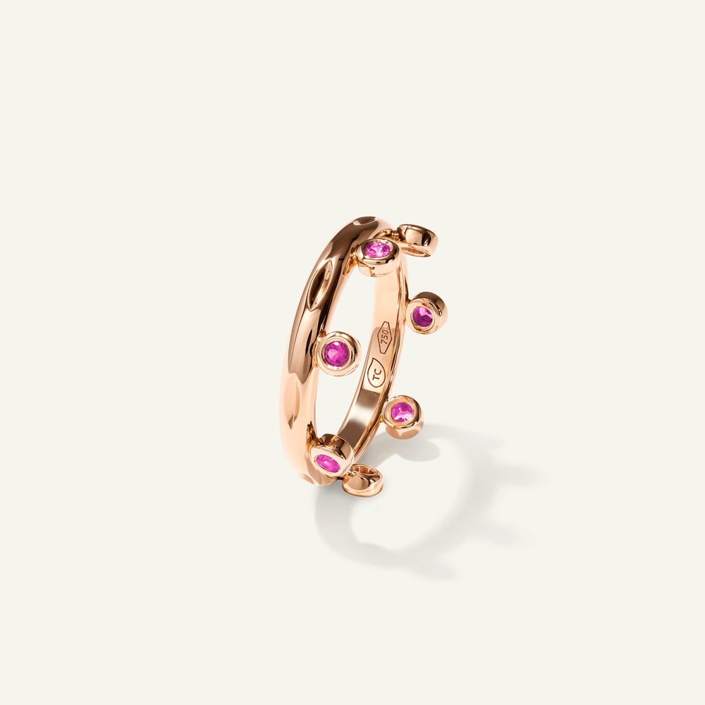 The GYPSY Crown Ring in the Color Story ‘Blush’ brings a radiant new expression to the collection. Crafted in 18K gold, it showcases brilliant-cut pink sapphires set along the crown-shaped band. With gemstones positioned on the sides, this design offers a striking silhouette and endless styling possibilities. As versatile and unique as the person who wears it, this ring is made to be collected, stacked, and cherished.