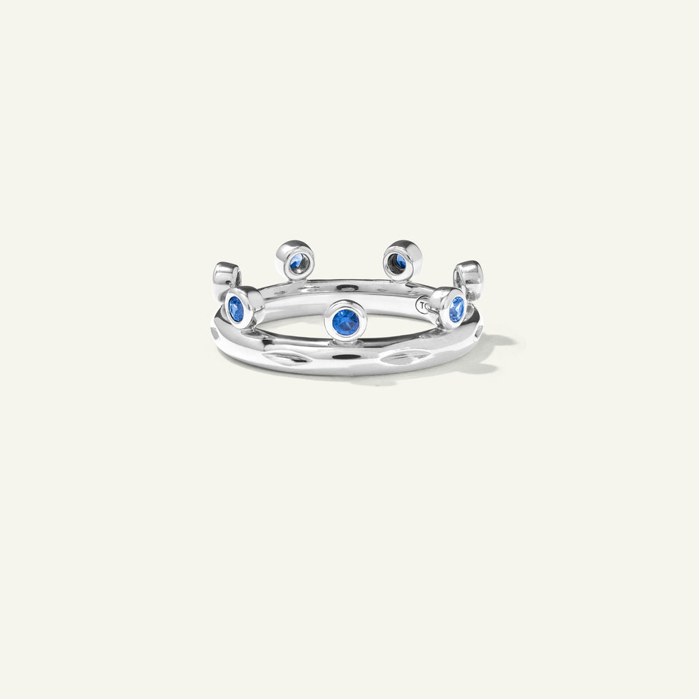 The GYPSY Crown Ring in the Color Story ‘Ocean’ captures the refreshing spirit of the sea. Crafted in 18K gold, it shines with brilliant-cut blue sapphires set along the crown-shaped band. With gemstones positioned on the sides, this design offers a striking silhouette and endless styling possibilities. As versatile and unique as the person who wears it, this ring is made to be collected, stacked, and cherished.