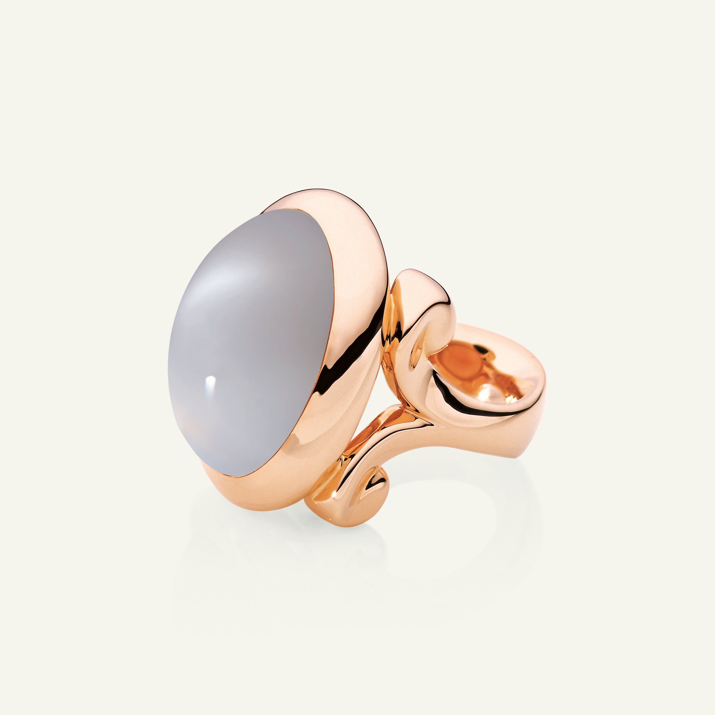 The HIPPIE GLAM Large Ring features a smooth cabochon grey Moonstone set in 18K gold. Its organic shape brings laid-back elegance to everyday wear. This versatile ring layers beautifully or makes a modern statement on its own.