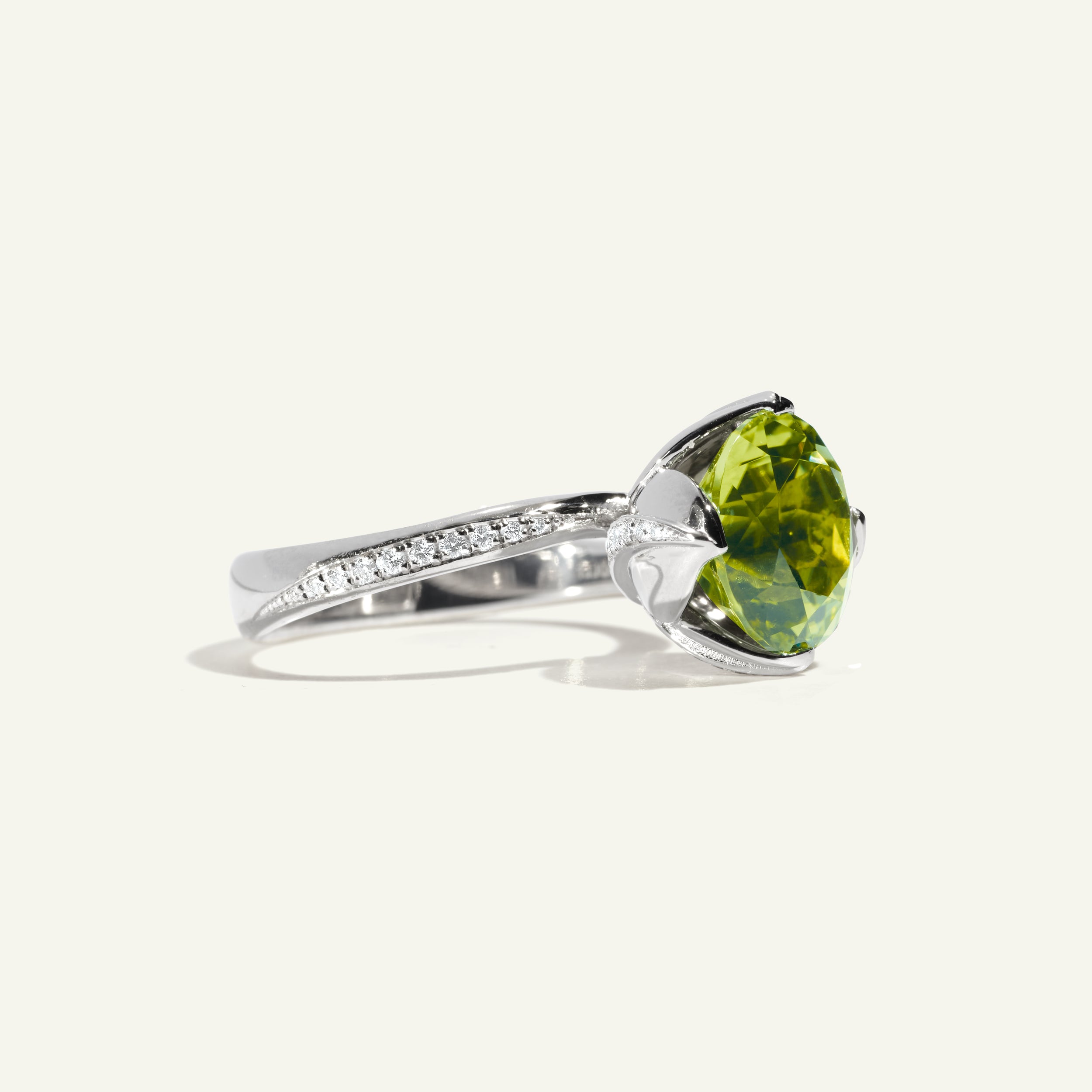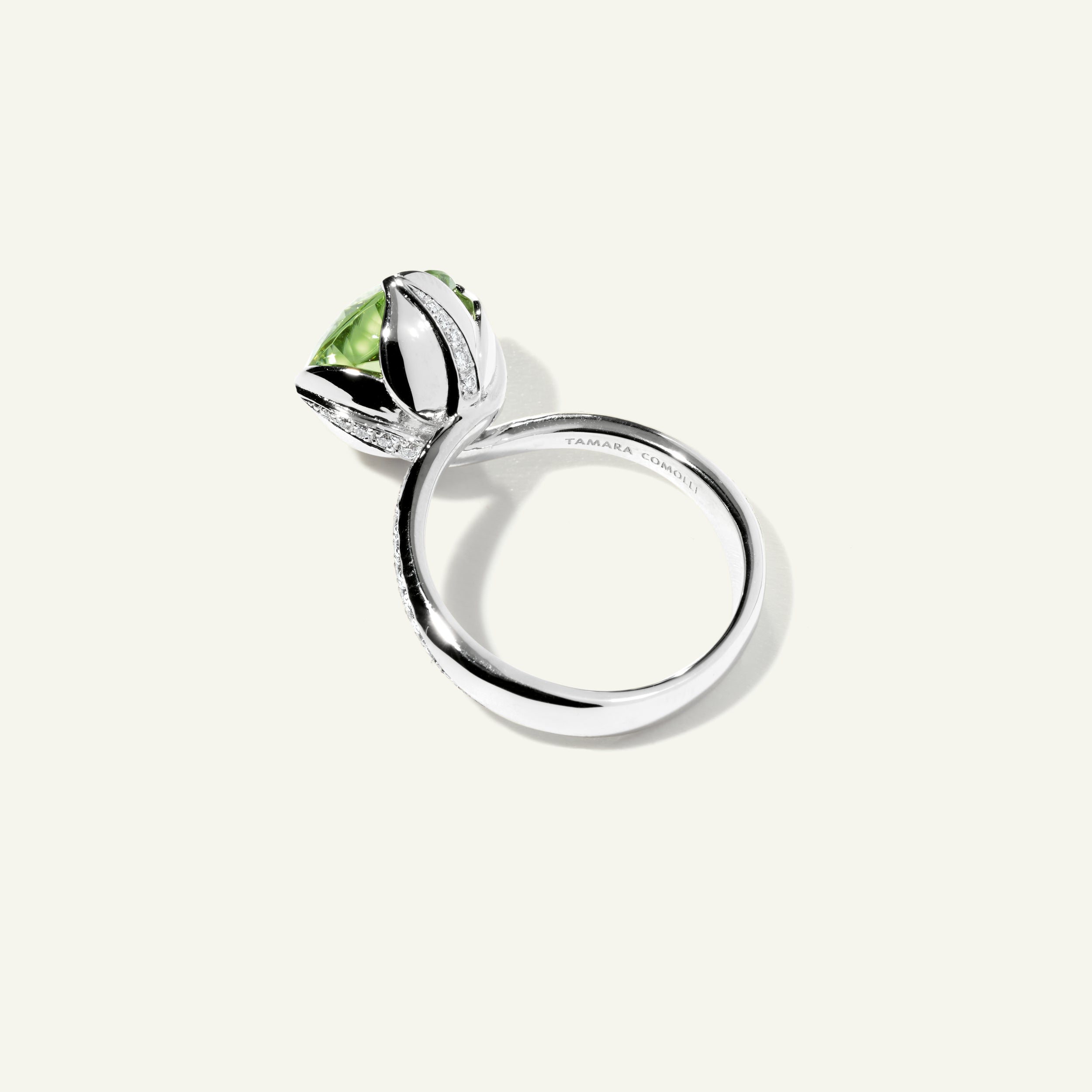 Captivating with its feminine design, our TULIP ring expertly showcases a beautiful mint tourmaline. The fine diamond pavé line lets the facets of this rare, colour-intensive gemstone shine from all angles.