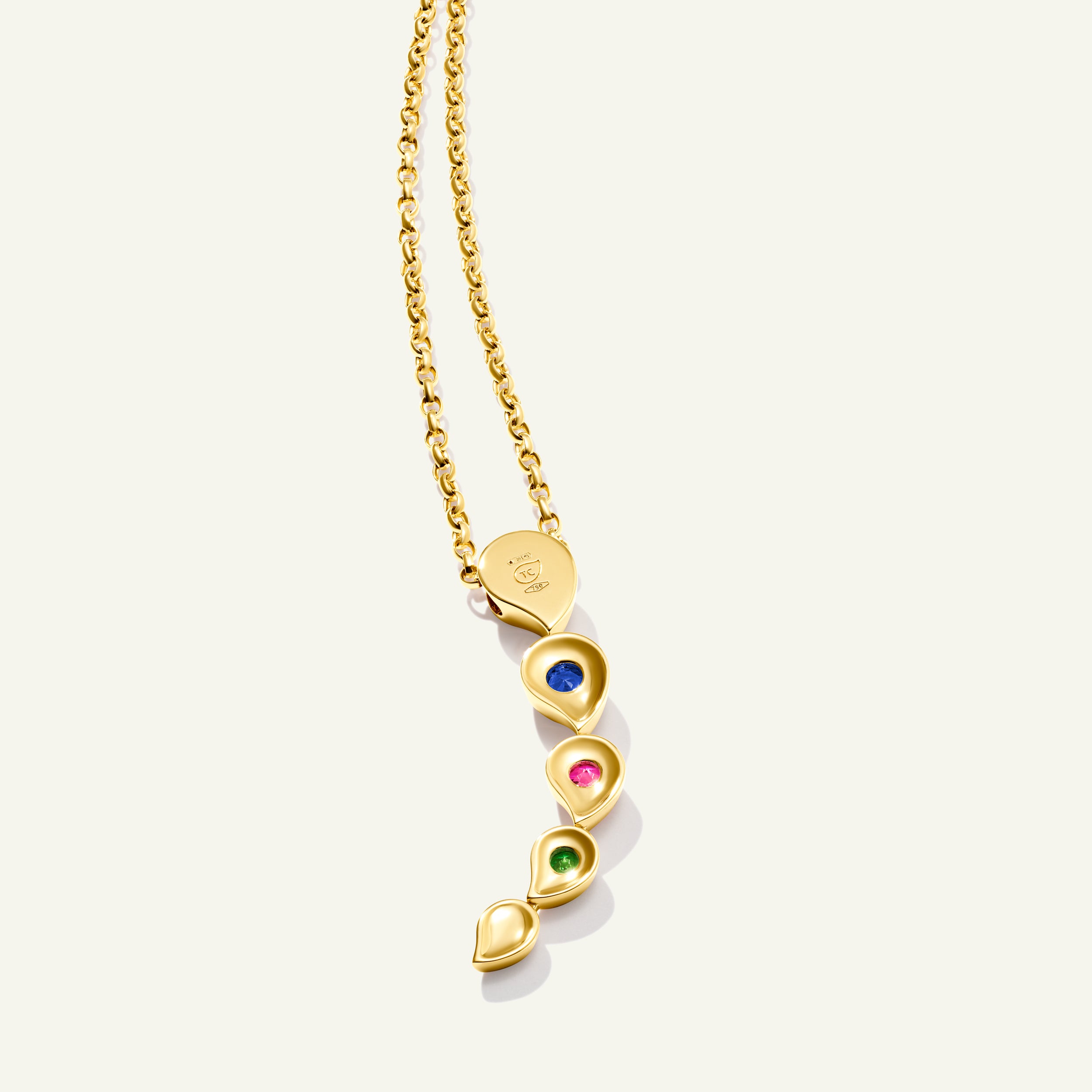 Embracing the romance of the SNOWFLAKES collection, the Rivière Pendant in ‘Candy’ features iconic water drop shapes in polished 18K gold, each set with a joyful mix of multicolored gemstones and shimmering white diamonds. Designed to allow gentle movement between each setting, it evokes the sensation of flowing water while catching the light, creating a beautiful statement where modern craftsmanship meets timeless sophistication.