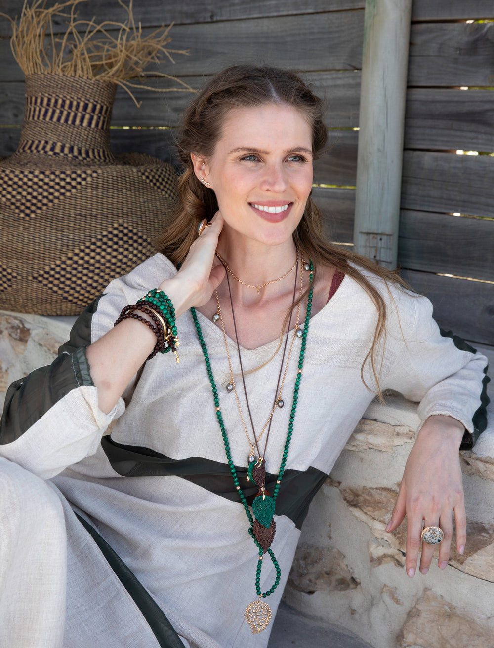 Ein dunkles, intensives Grün prägt diesen besonderen Stein und verleiht ihm eine unverwechselbare Ausstrahlung. Obwohl Malachit zu den weicheren und empfindlicheren Edelsteinen zählt, wird er seit jeher in Schmuck und dekorativen Objekten verarbeitet. Bedeutende Vorkommen finden sich in Namibia, Australien, Chile und den USA.