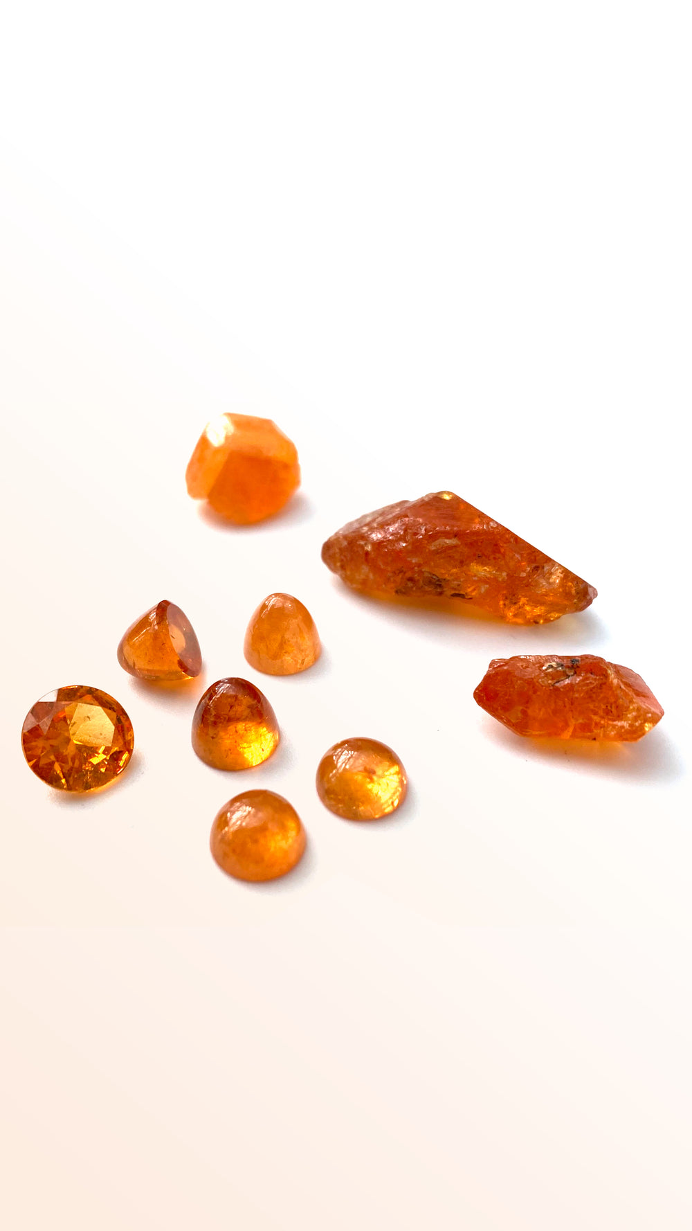 First discovered in Namibia in the 1990s, since sourced in Tanzania and Nigeria. Garnet gemstones are available in a wide range of orange hues, but the rare Mandarin Garnet is considered as pure orange as any natural gemstone can be. The high manganese content in Spessartine Garnets gives these stones their striking color and brilliance.