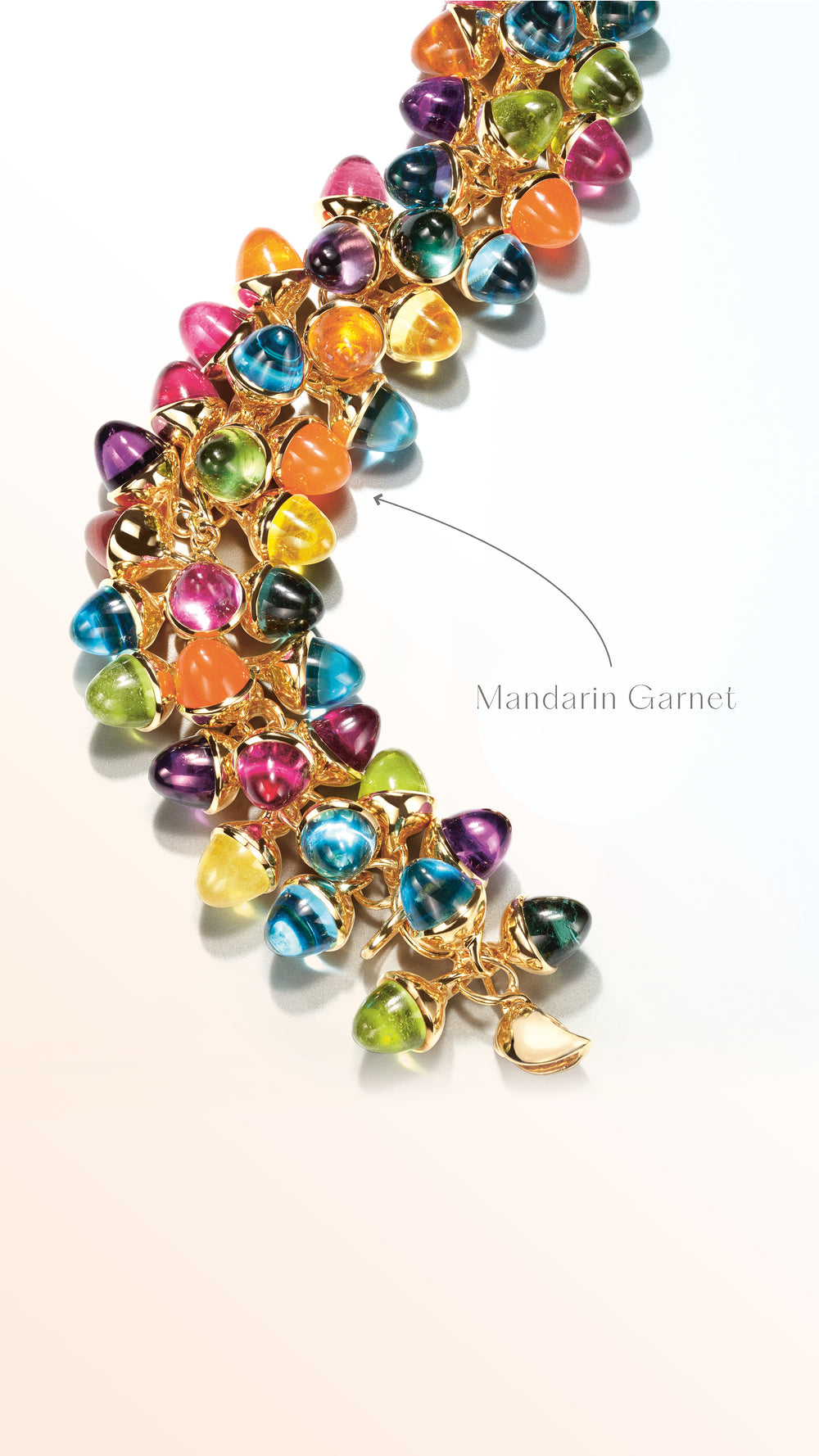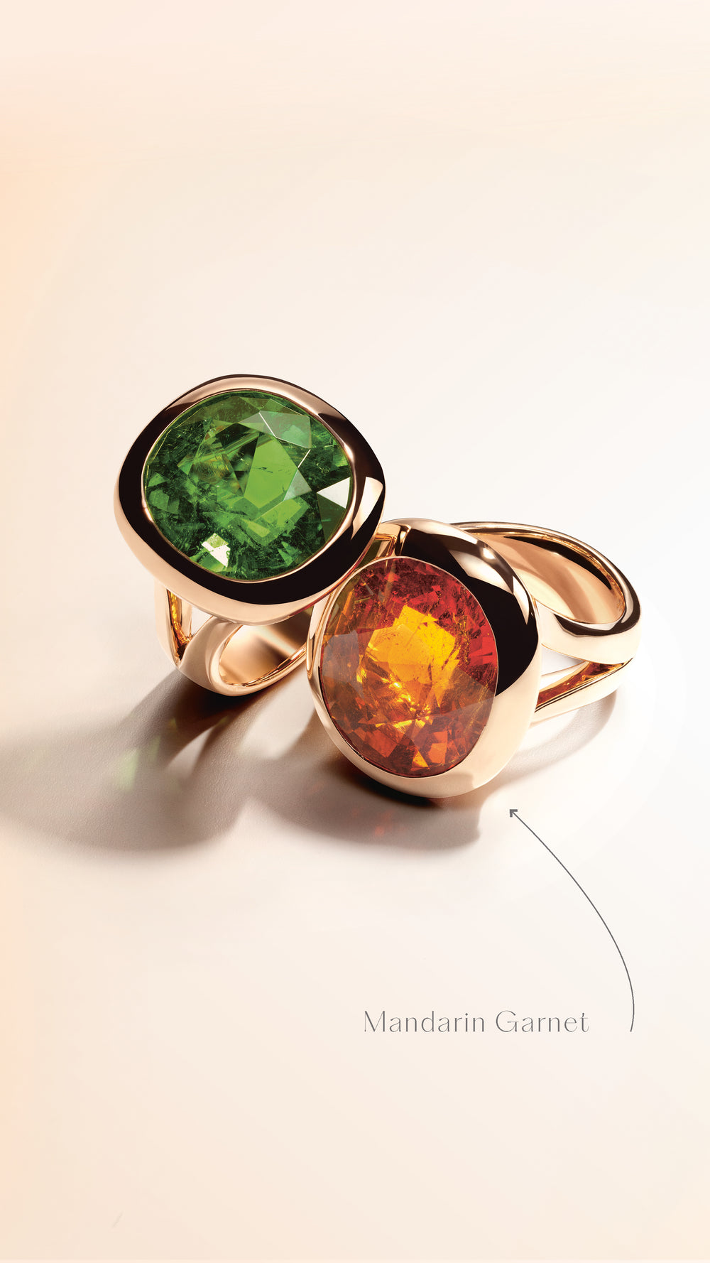 Leuchtend und voller Joie de Vivre: Granate gibt es in einer Vielzahl von Orangetönen, doch der seltene Mandarin Granat zeigt ein so reines Orange, wie es bei einem Naturstein nur möglich ist. Sein hoher Mangangehalt verleiht ihm diese intensive Farbe und eine strahlende Brillanz.