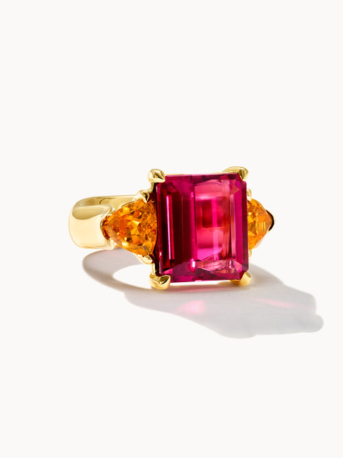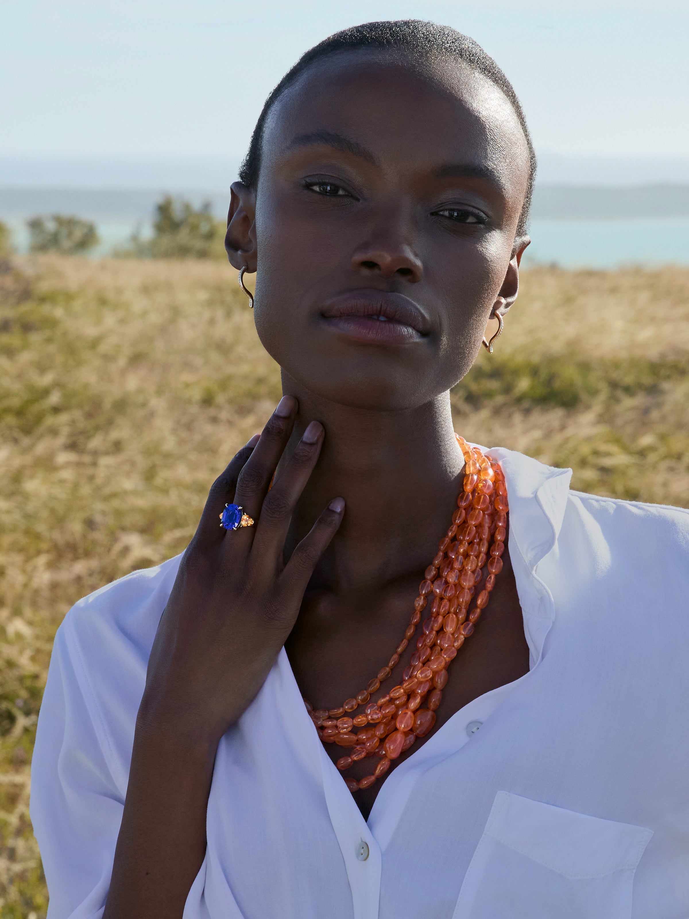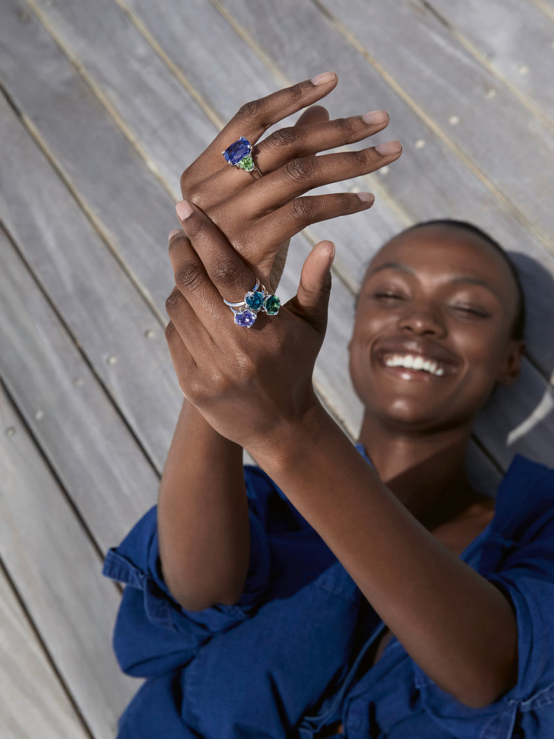 Neu interpretiert mit einem leuchtenden Regenbogen außergewöhnlicher afrikanischer Edelsteine, ist der GLAMOUR Ring ein Schmuckstück für die Ewigkeit.