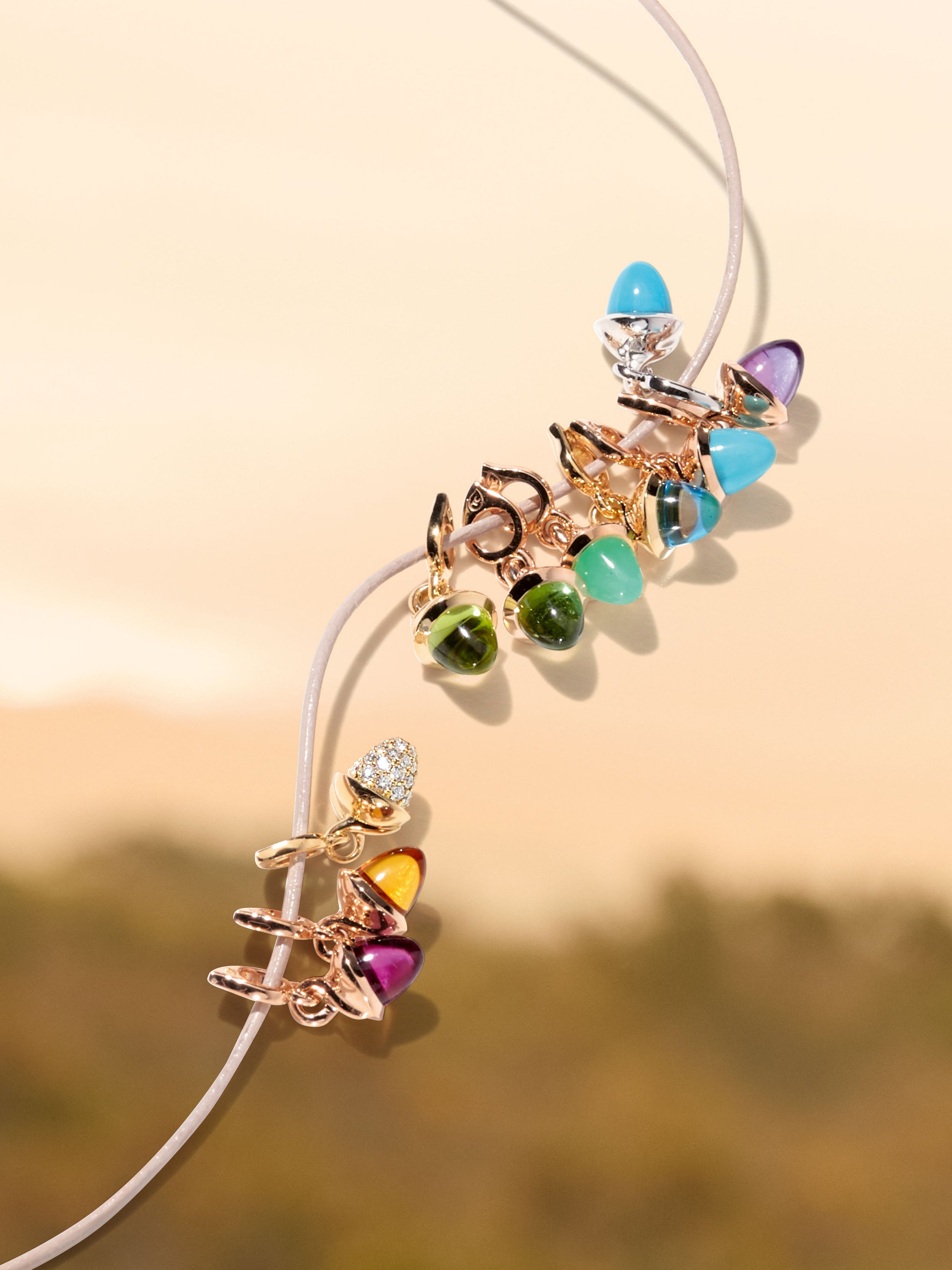 Die Kollektion, mit der alles begann: MIKADO fängt die lebendige, farbenfrohe Welt der Edelsteine in über 30 einzigartigen, kegelförmigen Anhängern ein, die in verschiedenen Größen erhältlich sind.