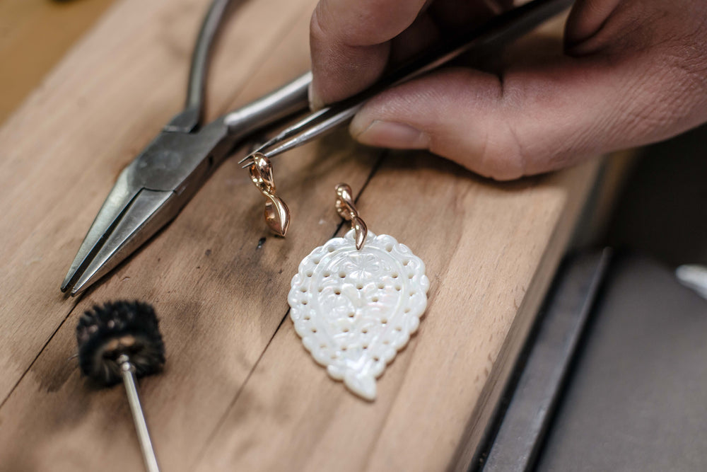 Von einigen Muscheln als innere Schalenschicht gebildet, wird Perlmutt seit jeher sowohl wegen seiner Schönheit als auch wegen seiner Widerstandsfähigkeit geschätzt. Seine irisierende, schimmernde Oberfläche fängt das Licht ein und offenbart dabei ein faszinierendes Farbspiel.