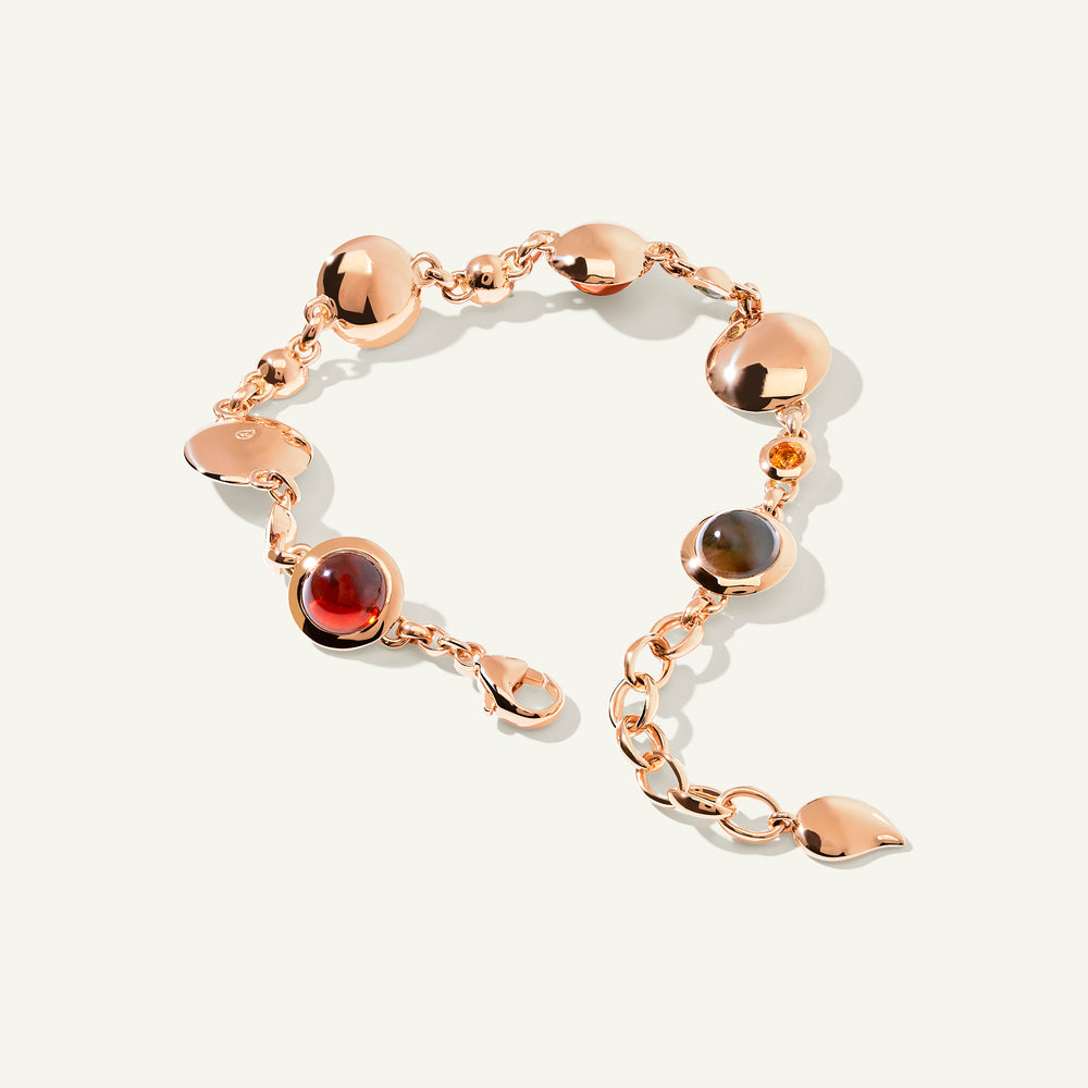 Das BOUTON Armband in 'Indian Summer' ist ist mit leuchtenden, im Cabochon geschliffenen Edelsteinen in warmen Grün-, Rot- und Orangetönen besetzt und wird von funkelnden Saphiren akzentuiert. Durch sein flexibles Design passt es sich jedem Handgelenk perfekt an und bietet vielseitige Styling-Möglichkeiten. Ein zeitloses Schmuckstück, das Sie viele Jahre lang begleiten wird.