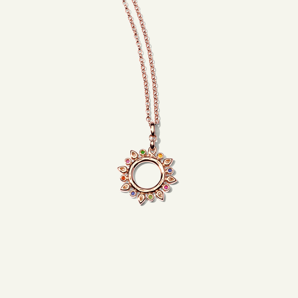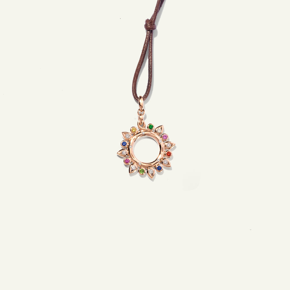 Lebendig und verspielt verkörpert der GYPSY Small Sun Anhänger in der Color Story 'Candy' pure Lebensfreude. Ein funkelnder Regenbogen aus Edelsteinen und schimmernden Diamanten ist kunstvoll in einem strahlenden Sonnenanhänger aus 18 Karat Gold arrangiert, der Wärme, Glück und Positivität symbolisiert. Leicht und voller Energie erstrahlt er mühelos an einem lässigen Lederband oder einer feinen Goldkette.