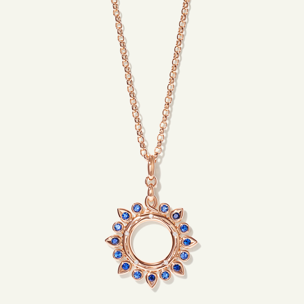 Frisch und strahlend verkörpert der GYPSY Small Sun Anhänger in der Color Story 'Ocean' den Geist des Meeres. Eine leuchtende Palette aus kühlen Blau- und Grüntönen, akzentuiert durch schimmernde Diamanten, ist kunstvoll in einem strahlenden Sonnenanhänger aus 18 Karat Gold arrangiert, der Ruhe, Vitalität und endlose Horizonte symbolisiert. Leicht und voller Lebensfreude erstrahlt er mühelos an einem lässigen Lederband oder einer feinen Goldkette.
