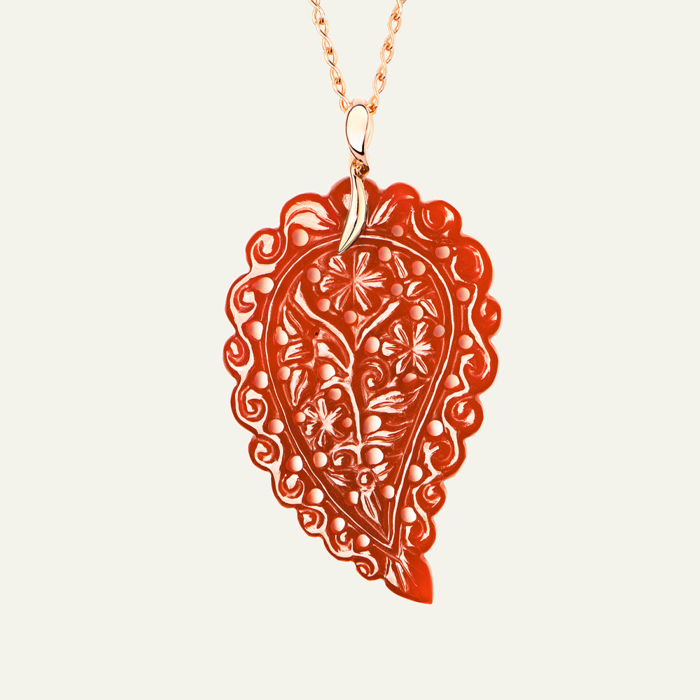 Der INDIA Large Anhänger aus 18 Karat Gold präsentiert kunstvoll geschnitzten Terra Onyx, dessen warme, erdige Brauntöne in einer eleganten Blattform zur Geltung kommen. Für das zarte Schwingen an einer Kette entworfen, ist er ein wunderschöner Alltagsfavorit, der jedem Look einen Hauch von Raffinesse verleiht – perfekt, um einem Layering-Style zusätzliche Dimension zu geben.