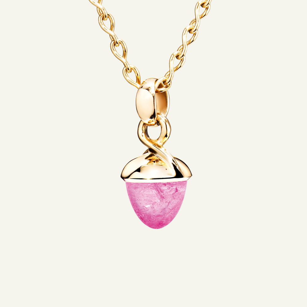 Der ikonische MIKADO BOUQUET Anhänger zeigt einen wunderschönen kostbaren rosa Turmalin in unserer geliebten Kegelform. Dieser mittelgroße Anhänger ist in 18K Gold gefasst und in vielen weiteren schönen Edelsteinkombinationen erhältlich, was zum Sammeln verlockt. Tragen Sie ihn an einer unserer Qualitätsketten oder Lederbändern.