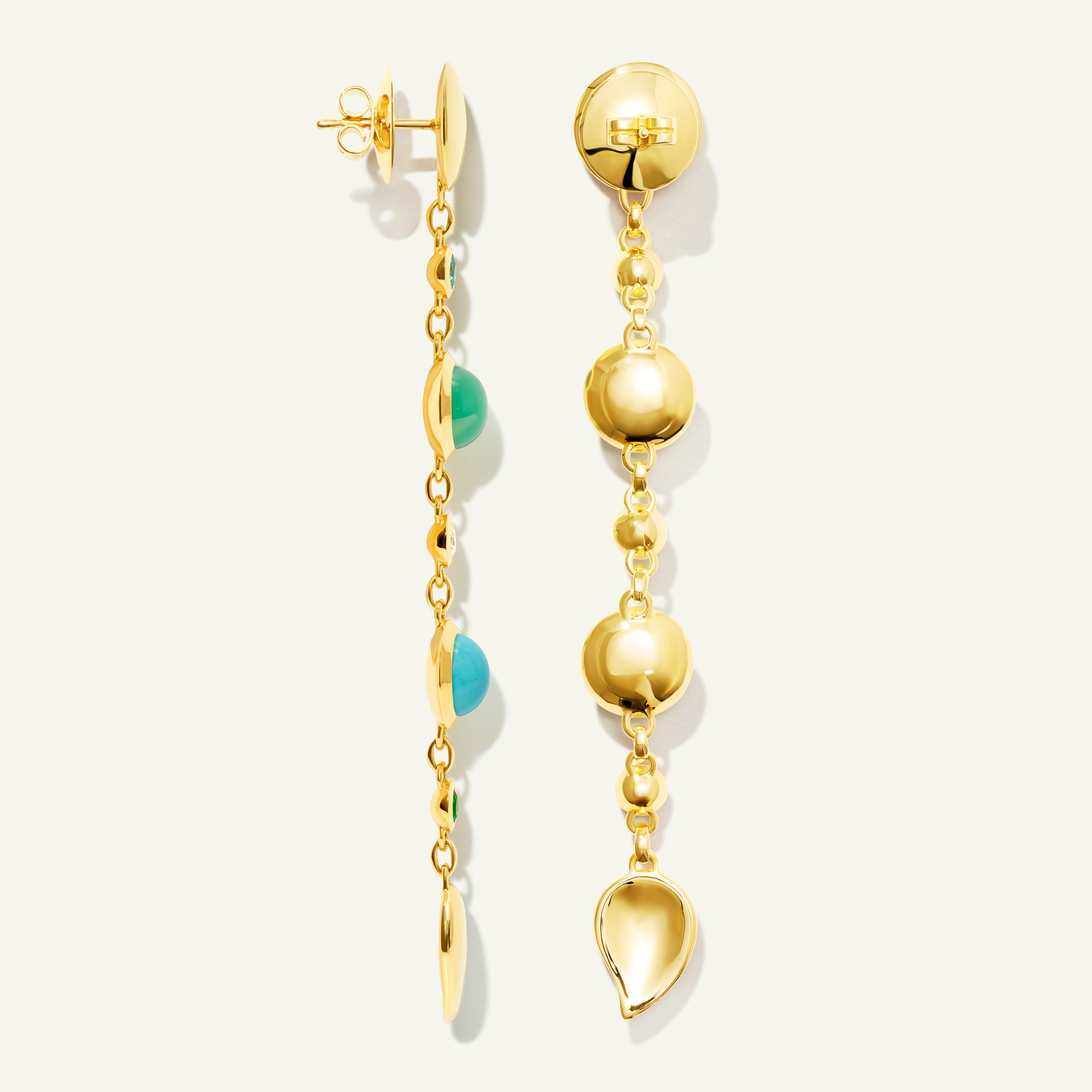 2x Chrysopras (je ca. 1,8 cts), 1x Türkis (ca. 0,3 g), 1x Swiss Topas (ca. 2,5 cts) Cabochons;