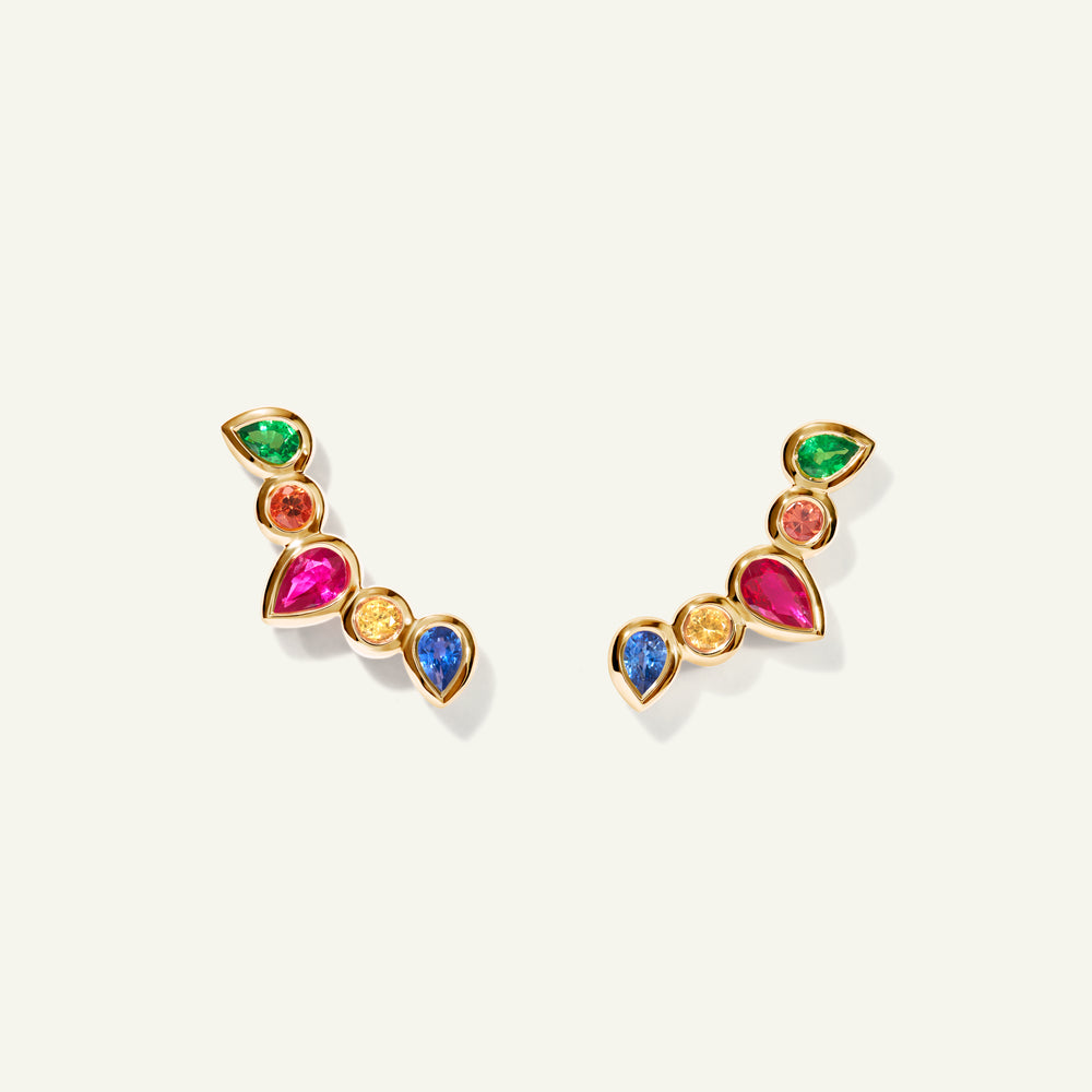 Die GYPSY Crawler Ohrringe aus 18 Karat Gold sind mit farbenfrohen Edelsteinen aus der ikonischen Color Story 'Candy' besetzt und verleihen ein Funkeln, das dem natürlichen Schwung des Ohrs folgt. Raffiniert und zugleich modern bringt dieses elegante Design den Geist der GYPSY Kollektion in einem subtilen Statement zum Ausdruck.