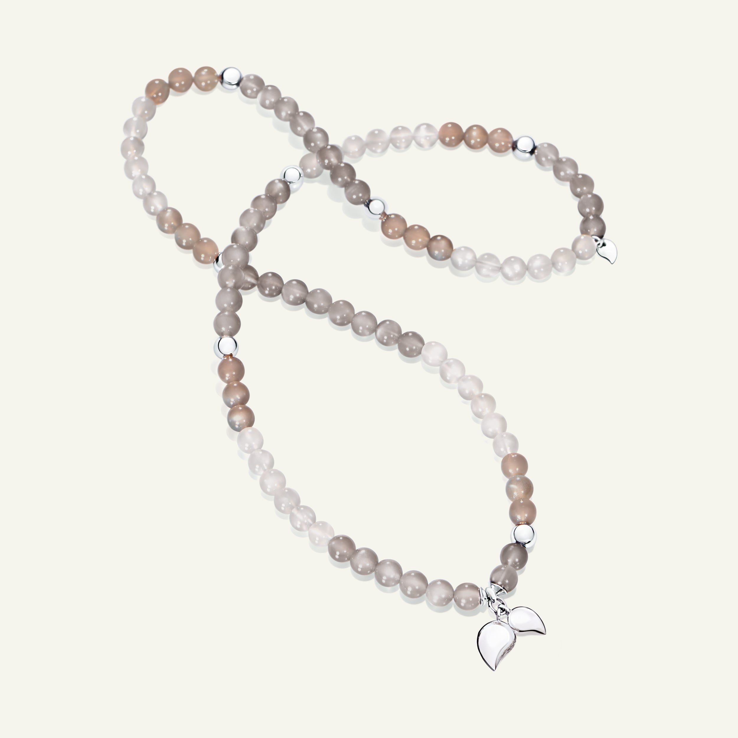 Das INDIA Medium Armband in der Color Story 'Camel' besteht aus Mondsteinen in sanften, kühlen Naturtönen von Braun, Grau und Weiß, akzentuiert durch Elemente aus 18 Karat Gold und zwei bewegliche Drop Charms. Auf elastischem Band aufgezogen, überzeugt dieses dreifach gewickelte Design mit höchstem Tragekomfort und lässt sich auch als Halskette tragen – für vielseitigen Stil und natürliche Eleganz.