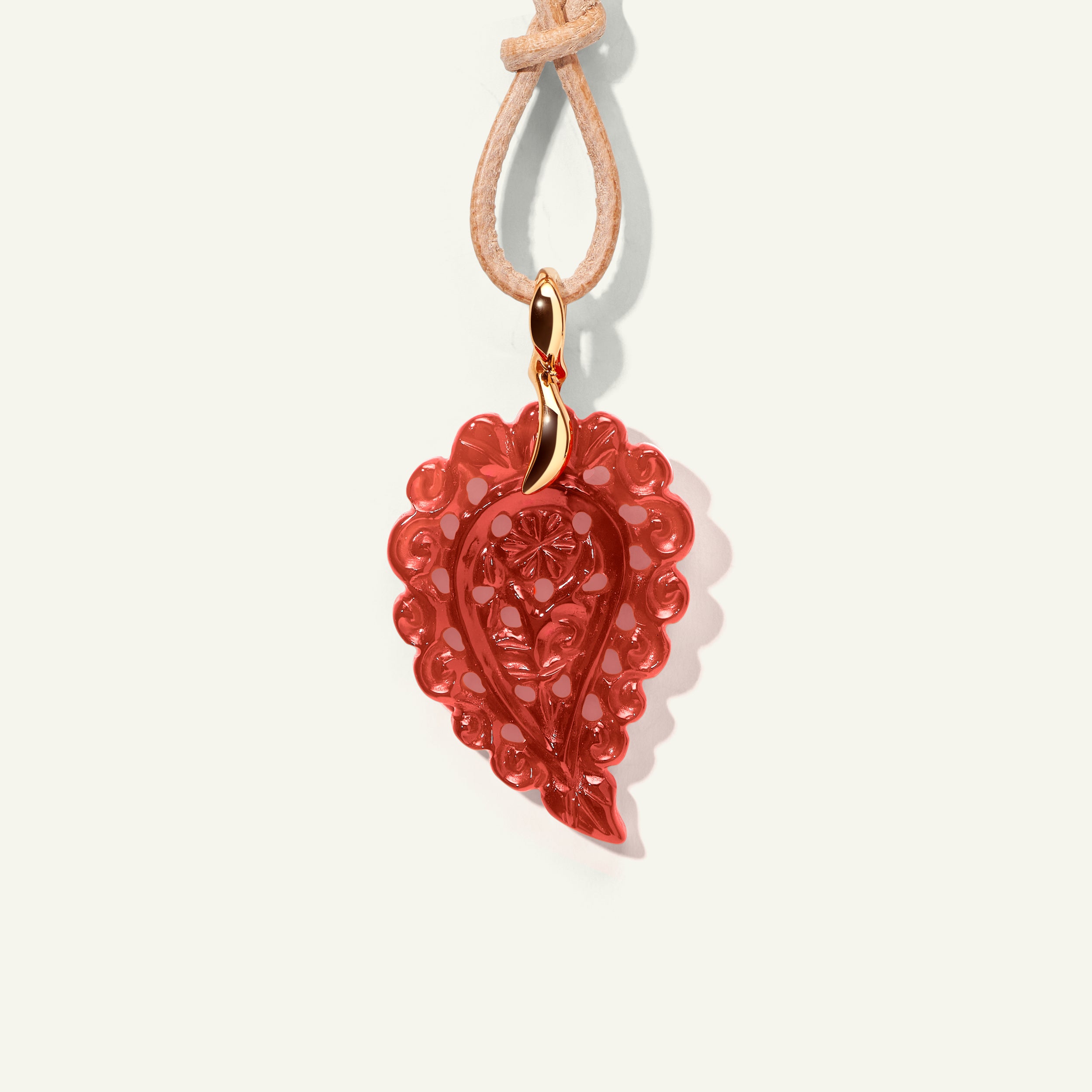 Der INDIA Small Anhänger aus 18 Karat Gold präsentiert kunstvoll geschnitzten Terra Onyx, dessen warme, erdige Brauntöne in einer eleganten Blattform zur Geltung kommen. Für das zarte Schwingen an einer Kette entworfen, ist er ein wunderschöner Alltagsfavorit, der jedem Look einen Hauch von Raffinesse verleiht – perfekt, um einem Layering-Style zusätzliche Dimension zu geben.
