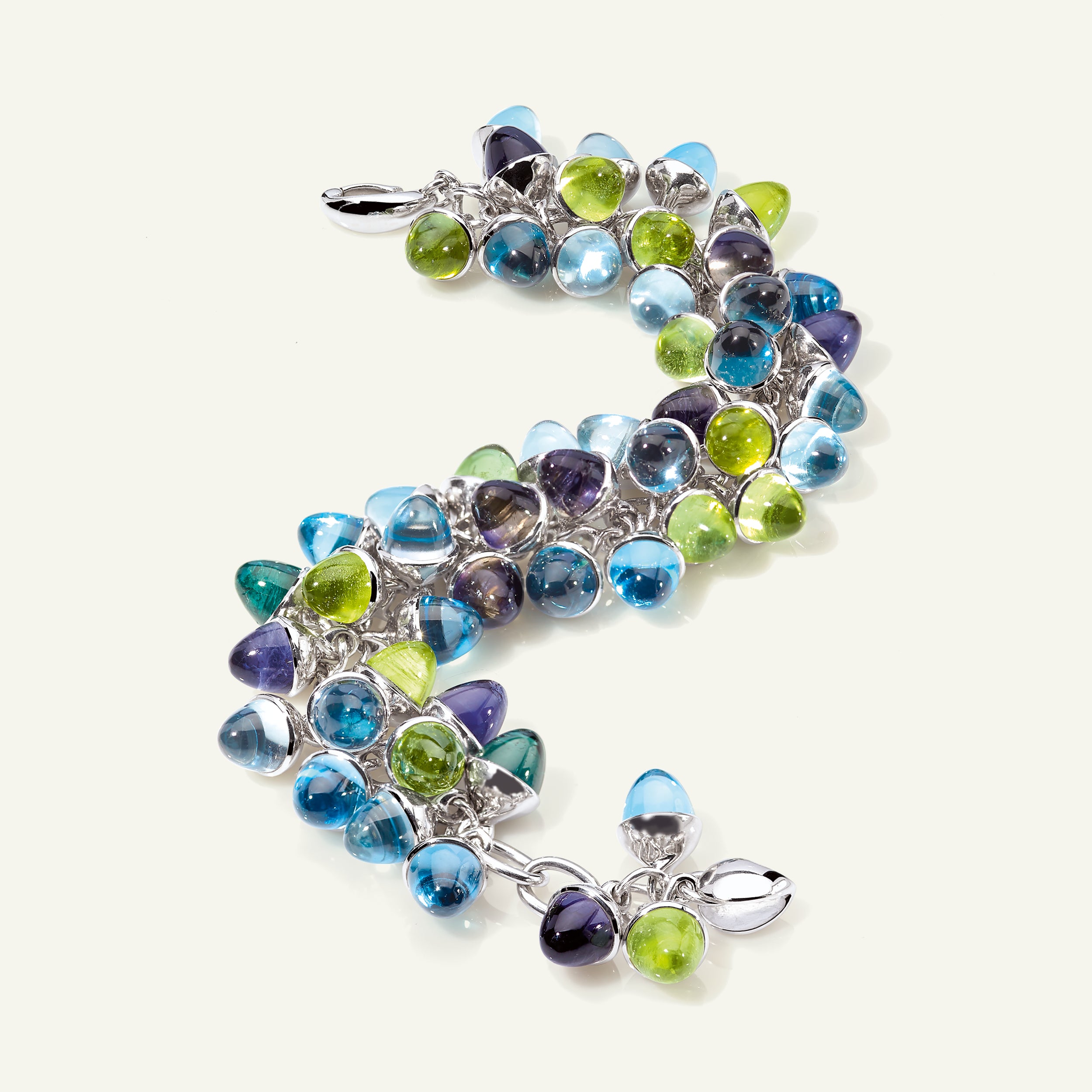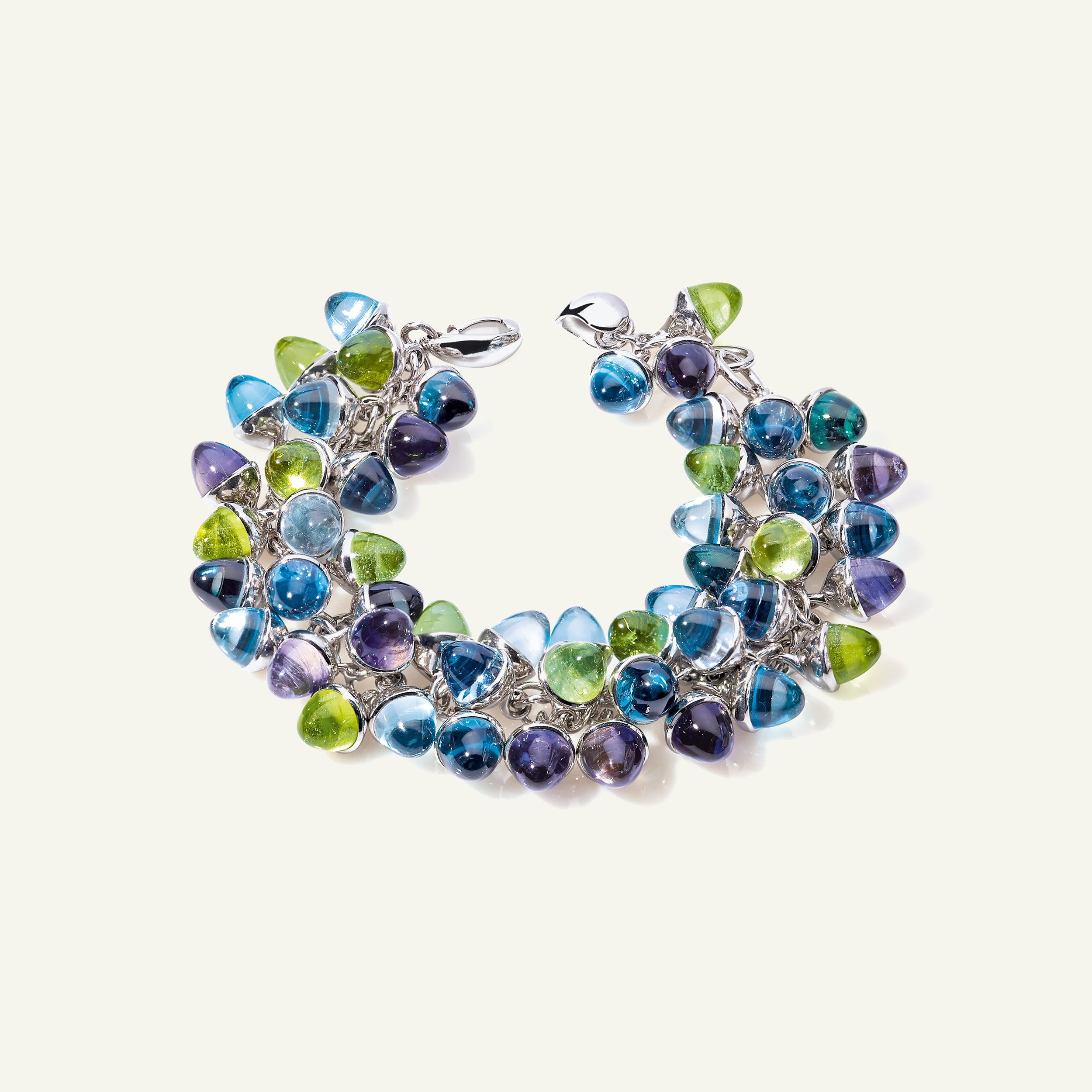 Tauchen Sie ein in eine Welt voller zeitloser Eleganz: Das ikonische MIKADO Flamenco Armband fängt mit 51 kegelförmigen Edelsteinen die Leidenschaft und Energie des Flamenco-Tanzes ein. In aufwendiger Handarbeit aus 18 Karat Gold gefertigt, spiegelt die Color Story 'Caribbean' die Tage am Meer wider. Ein fröhliches Design, das dich von deinem nächsten Strandurlaub träumen lässt.