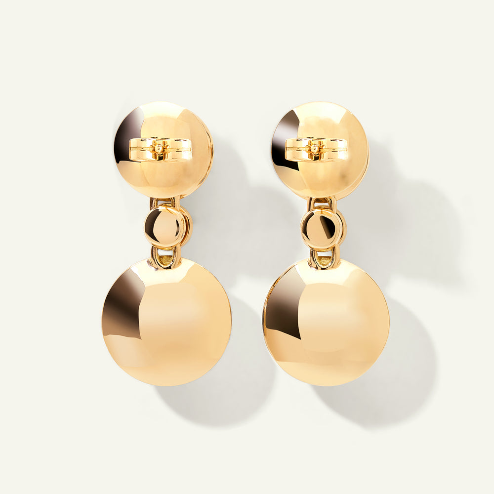 Die BOUTON 2 Cabochons Ohrringe aus 18 Karat Gold präsentieren die sanften Neutraltöne der Color Story 'Sand' und kombinieren leuchtend weißen mit sandfarbenem Mondstein. Verbunden durch einen funkelnden weißen Diamanten schmücken diese ausdrucksstarken Ohrringe das Ohr mit höchster Handwerkskunst und farbenprächtigen Details.