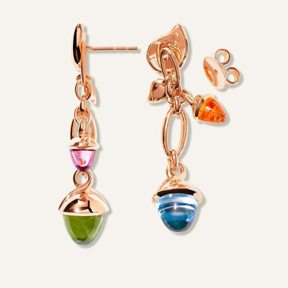 Eine Hommage an die Individualität: Die MIKADO Dangling 2 Acorn Ohrringe lassen sich wahlweise als elegante Hänger, stilvolle Stecker oder als Anhänger an einer Kette tragen. In aufwendiger Handarbeit aus 18 Karat Gold gefertigt, verleihen die charakteristischen Wassertropfen-Details dem Design eine unverwechselbare Signatur. Die farbenfrohe Color Story 'Candy' kombiniert leuchtende, bunte Edelsteine zu einem Look, der verspielt und gleichzeitig mühelos schick wirkt.
