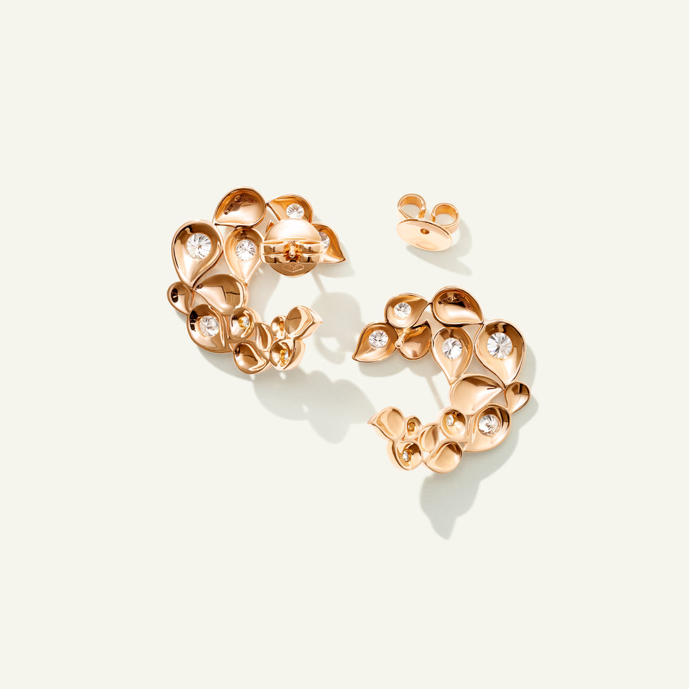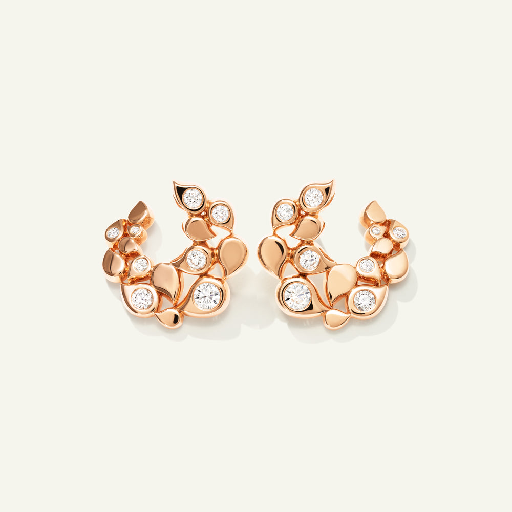 Ganz im romantischen Geist der SNOWFLAKES Kollektion präsentieren diese kunstvollen Ohrringe das ikonische Wassertropfen-Motiv in einer Abfolge aus poliertem 18 Karat Gold und funkelnden weißen Diamanten. Mit ihrer gedrehten Creolen-Silhouette schmiegen sie sich sanft hinter das Ohrläppchen und formen einen eleganten Kreis, in dem moderne Handwerkskunst auf zeitlose Raffinesse trifft.