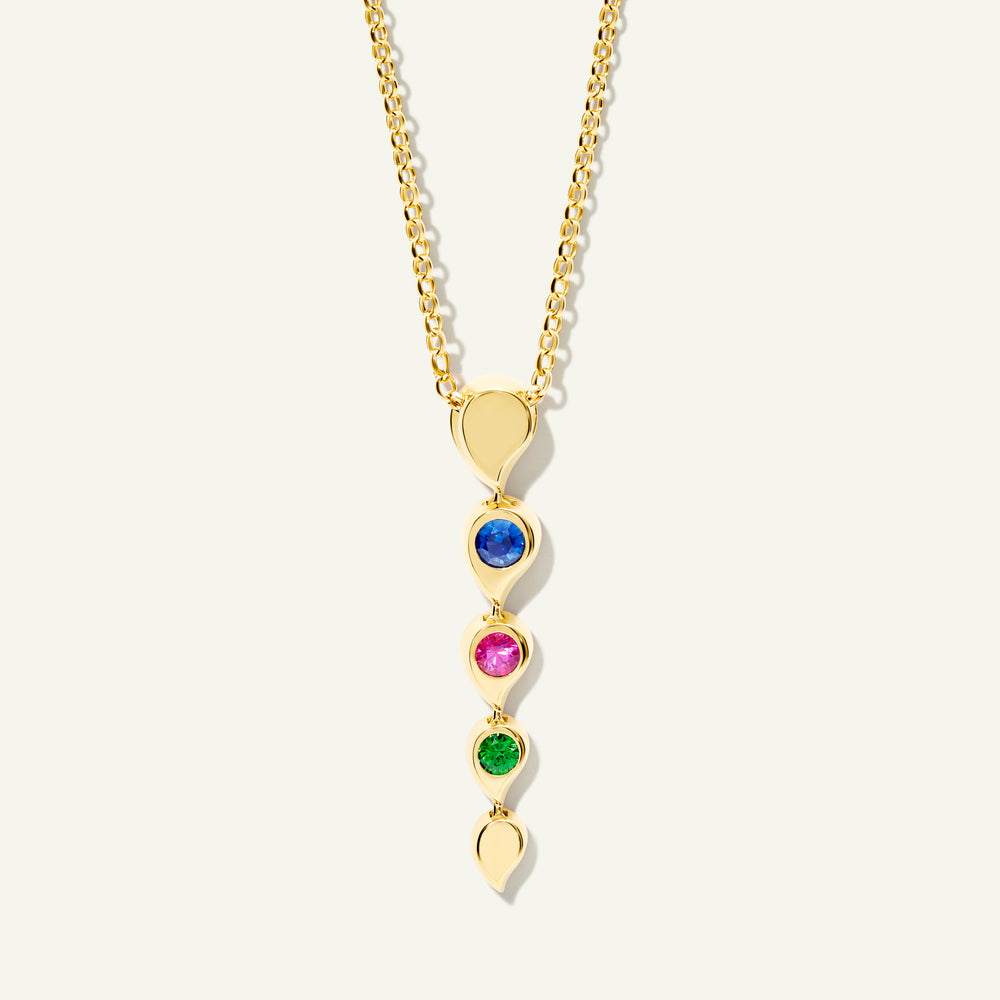 Ganz im romantischen Geist der SNOWFLAKES Kollektion präsentiert der Rivière Anhänger in 'Candy' ikonische Wassertropfen-Formen aus poliertem 18 Karat Gold, jeweils besetzt mit einer fröhlichen Mischung aus mehrfarbigen Edelsteinen und funkelnden weißen Diamanten. Durch die sanfte Beweglichkeit zwischen den Fassungen entsteht die Anmutung fließenden Wassers, während das Licht eingefangen wird – ein beeindruckendes Schmuckstück, in dem moderne Handwerkskunst auf zeitlose Raffinesse trifft.