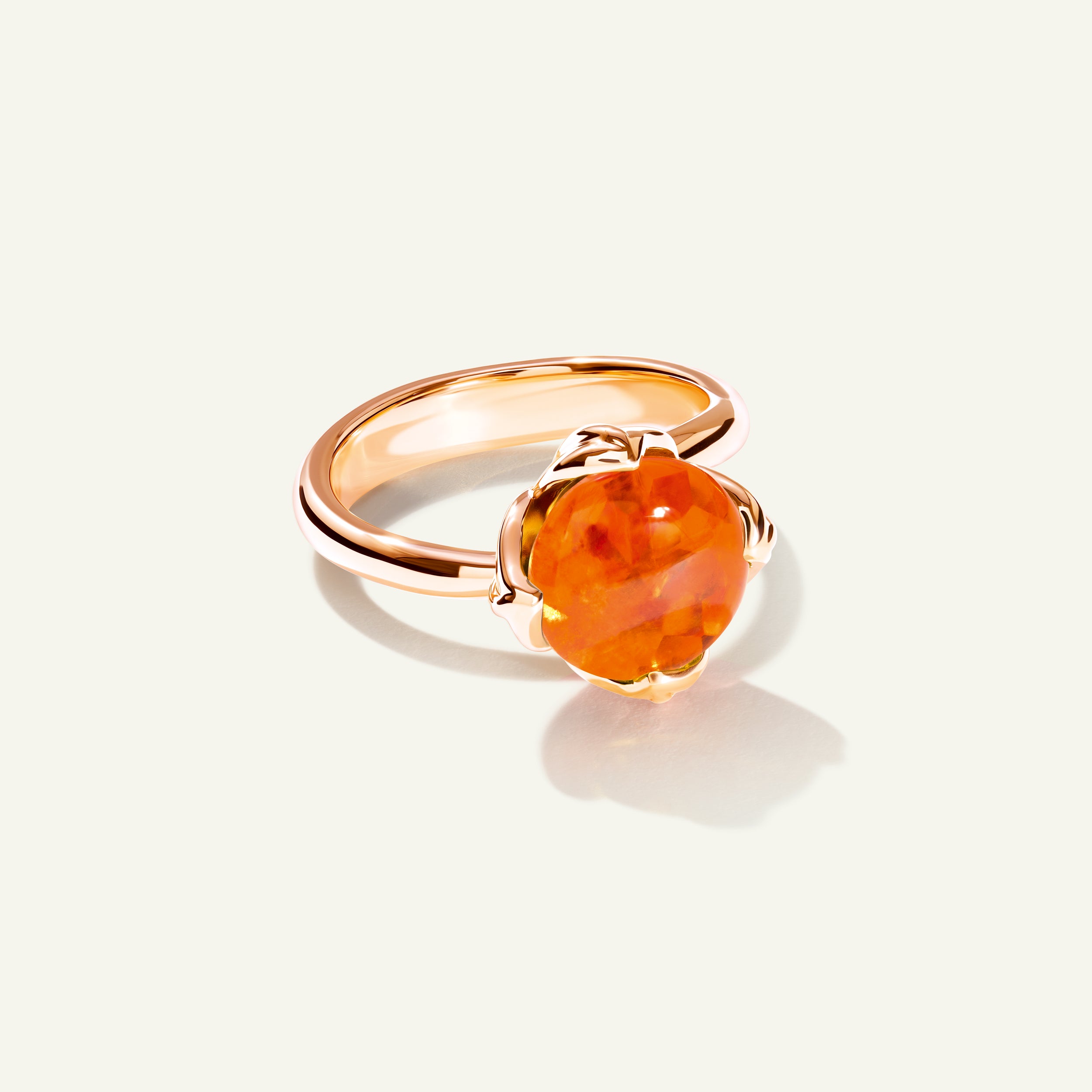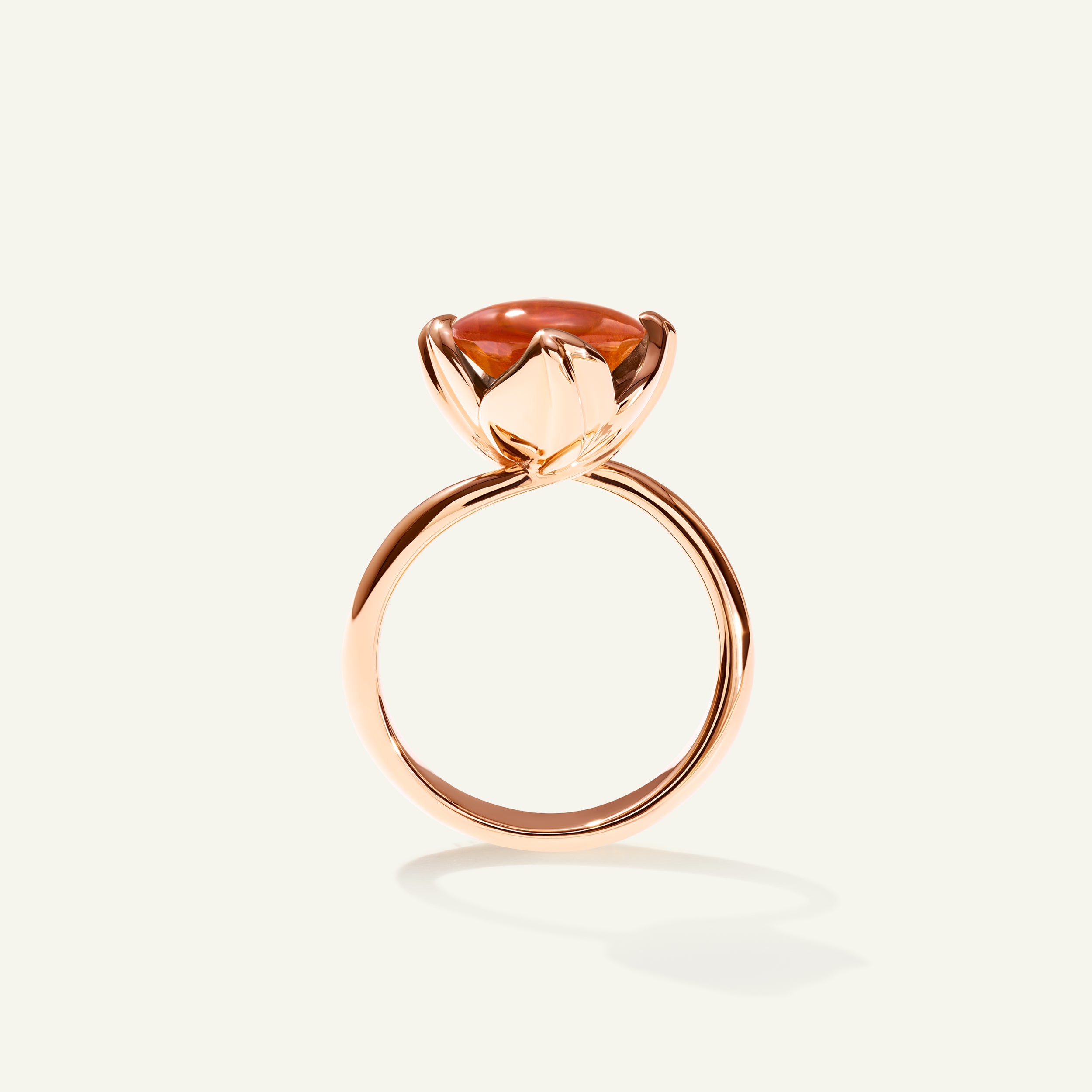 Der TULIP Small Ring präsentiert einen feurig orangefarbenen Mandarin Granat als Mittelstein, der von einer filigranen Krappenfassung getragen und von vier kunstvoll geformten Tulpenblättern umrahmt wird. Die Ringschiene aus 18 Karat Gold schmiegt sich elegant um den Finger – entworfen, um solo getragen oder mit weiteren TULIP Ringen kombiniert zu werden und so einen unverwechselbaren Signature-Look zu kreieren.