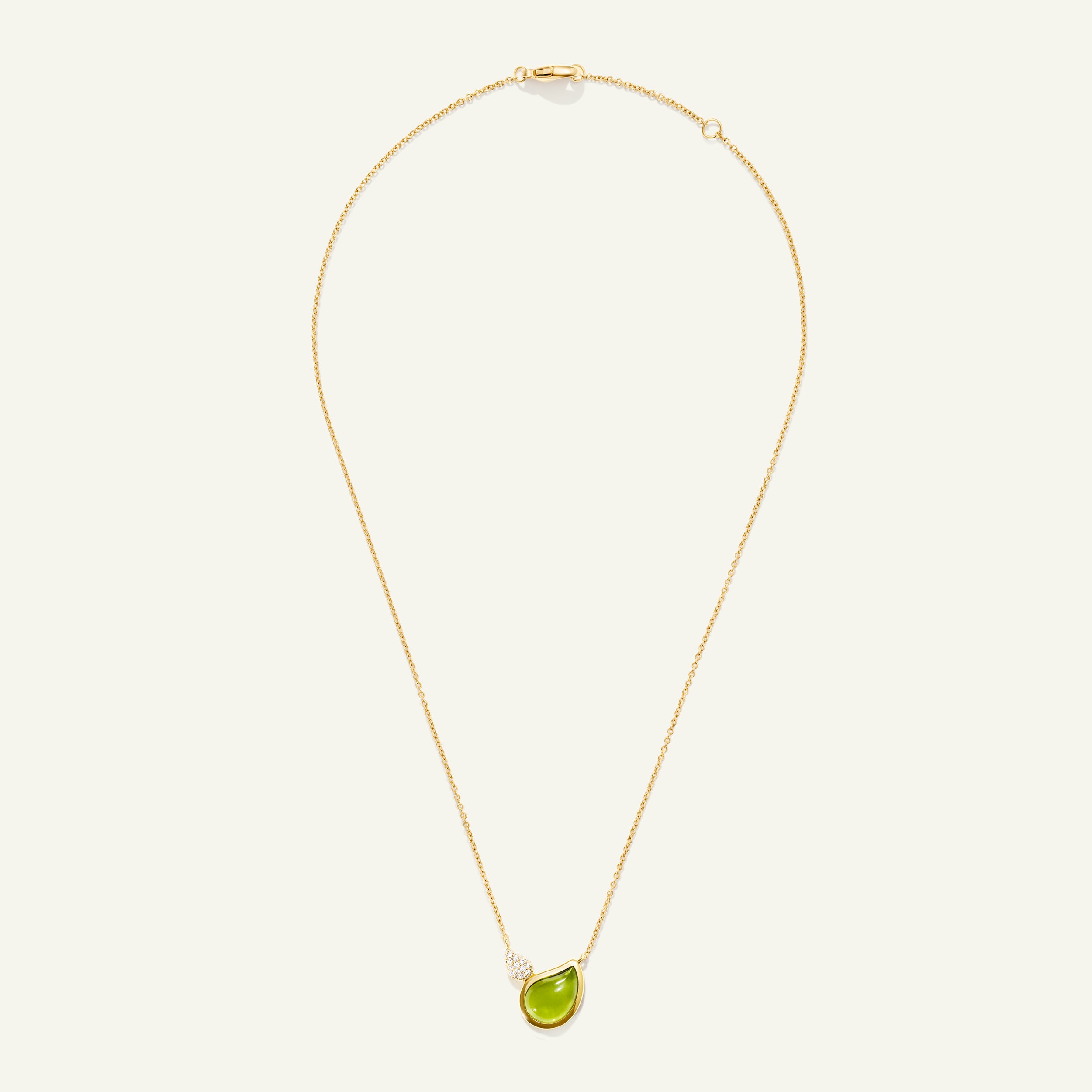 Eine verspielte, doch subtile Ergänzung zur SIGNATURE Kollektion, diese doppelte Tropfen-Halskette verfügt über einen zarten Tropfen in Diamant Pavé, sowie einen größeren Edelstein-Tropfen in elegantem Peridot. Dank der verstellbaren Kettenlänge lässt sich dieses Schmuckstück mühelos mit der gesamten TAMARA COMOLLI Kollektion kombinieren, wie eine sanfte Sommerbrise.