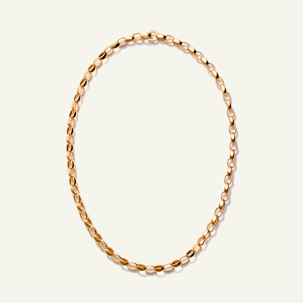 Die SIGNATURE Halskette ist eine vollständig handgefertigte Kette aus massiven 18K Goldgliedern. Erstaunlich vielseitig, hat diese Halskette Verschlüsse an beiden Enden, sodass fast unendliche Gestaltungsmöglichkeiten gegeben sind. Sie können diese als klassisches Solo-Statement, im Y-Lariat-Stil oder mit Ihren Lieblingsanhängern tragen. Außerdem eignet sie sich perfekt als chunky, dreifach gewickeltes Armband.